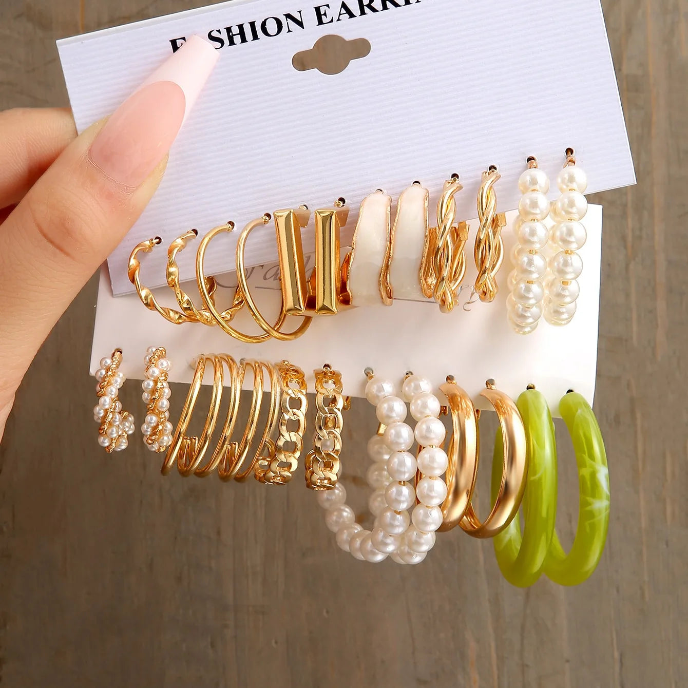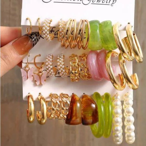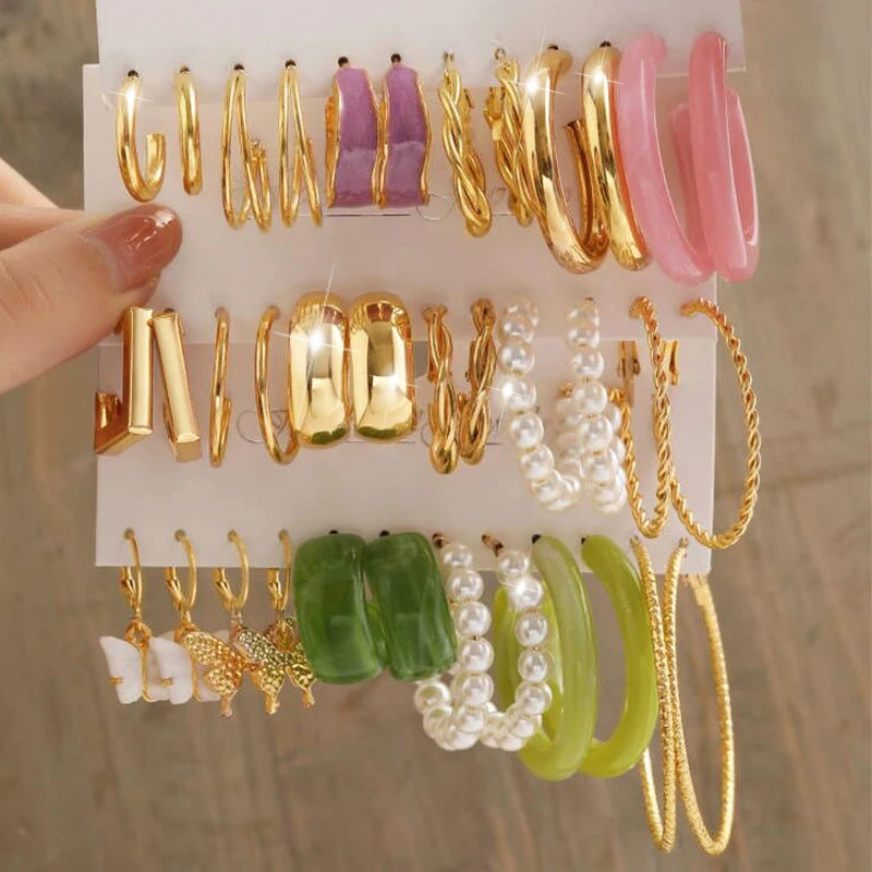 18 Pcs New Fashion Colorful Earrings Set For Women Boho Butterfly Gold Silver Color Pearl Circle Dangle Earrings Jewelry Gifts