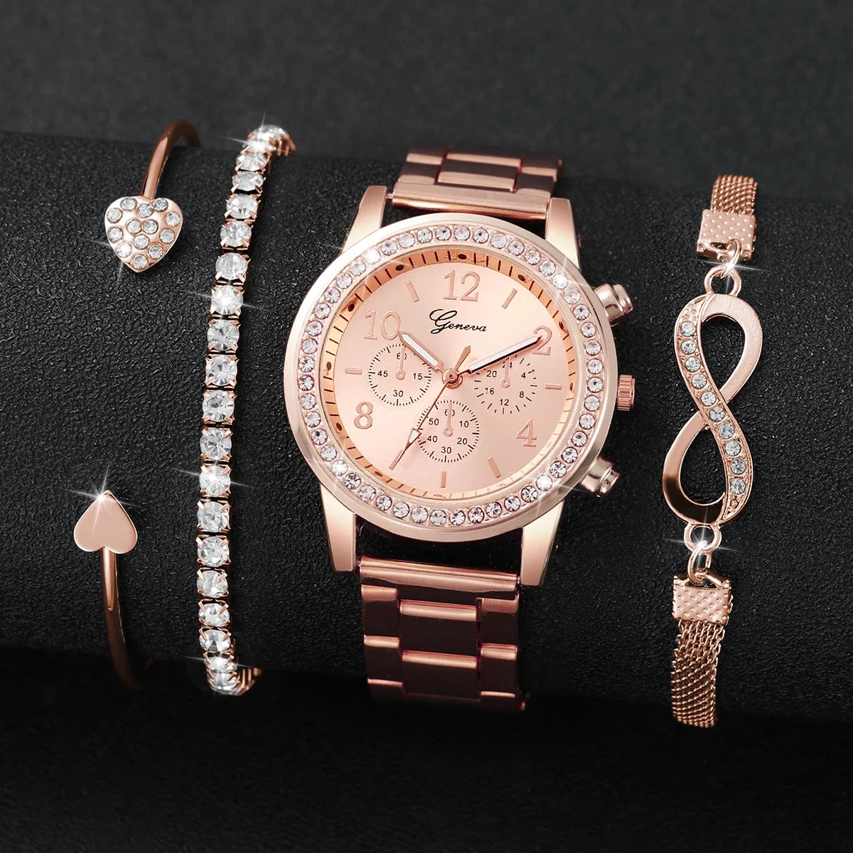 4PCS/Set Fashion Rhinestone Women Watches Luxury Steel Band Ladies Quartz Watch Bracelets Set Reloj Mujer(Without Box)