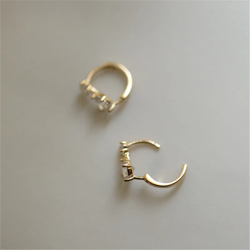 925 Sterling Silver Plating 14K Gold Earrings Korea Sweet Zircon Ear Studs Women Temperament Party Jewelry Gifts