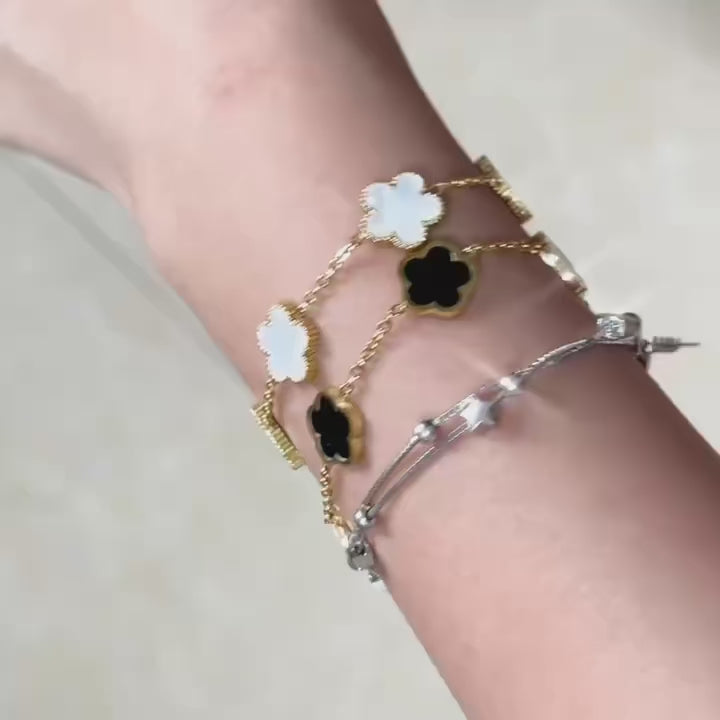 Adjustable New Design Gold Plated Stainless Steel 316L Plant Flower Bracelet With Five Leaf Petals Women's Luxury Gifts Clover
