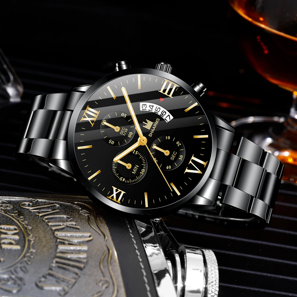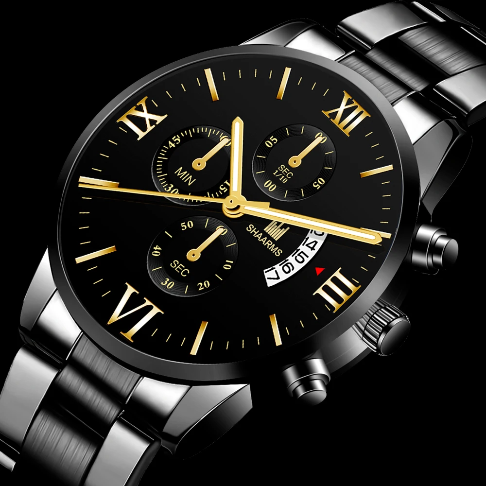 Business Brand Luxury Men's Military Quartz Watch Men's Stainless Steel Gold Black Calendar Date Watch Male Clock Relogio