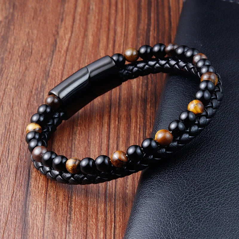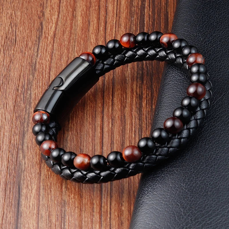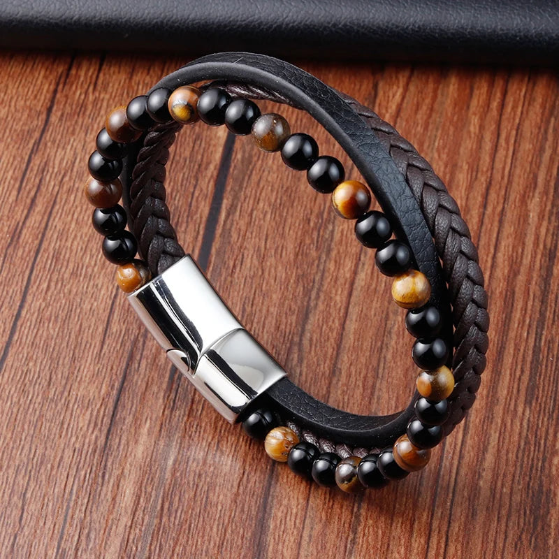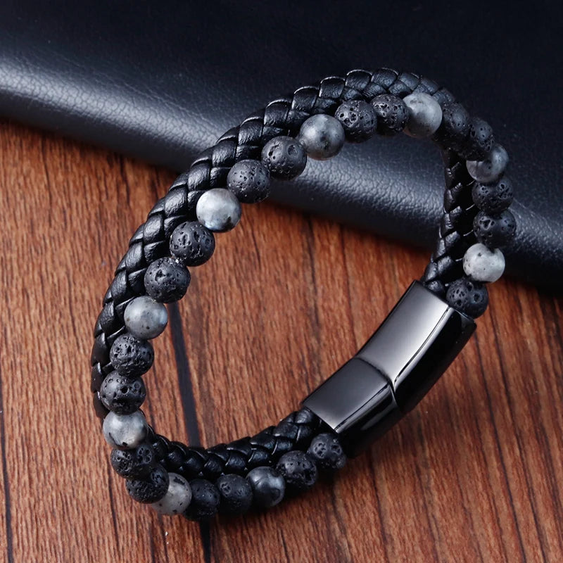 Charm Rope Stainless Steel Magnetic Natural Stone Leather Man Bracelet Beaded Braclet Volcanic Stone bracelet bangles Chain Gift