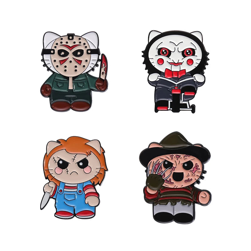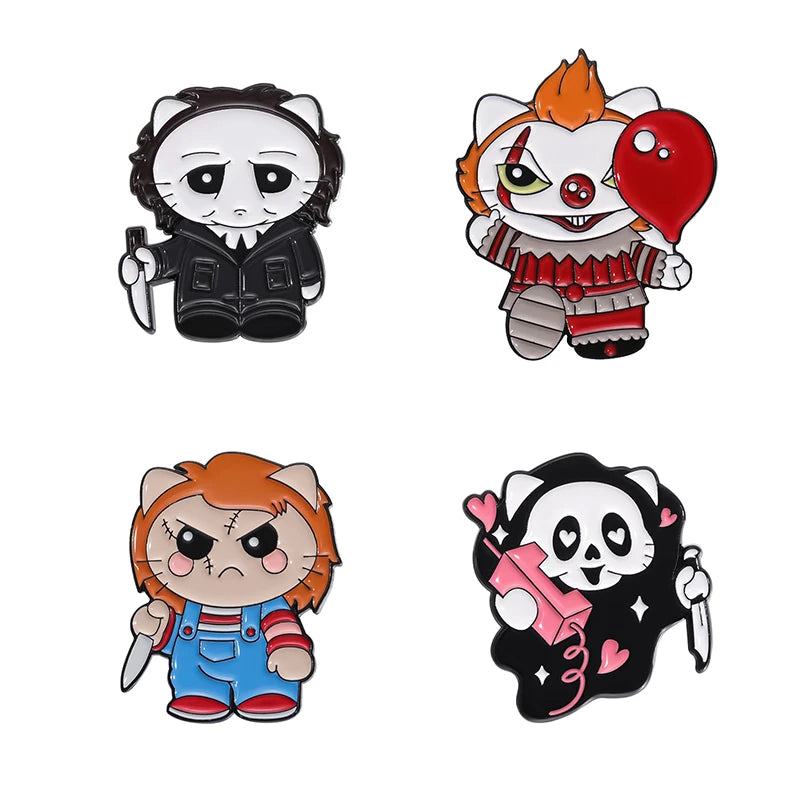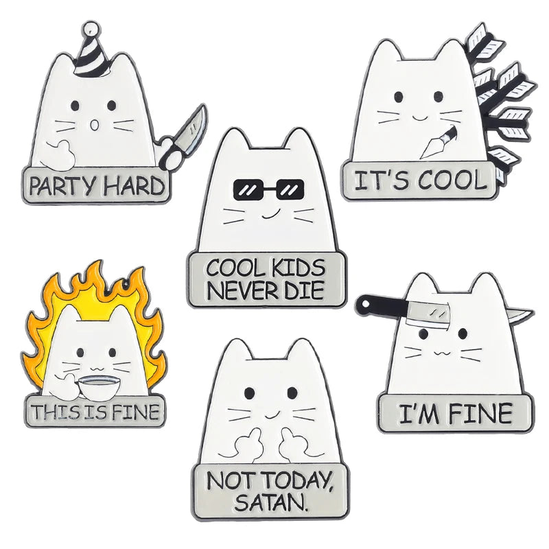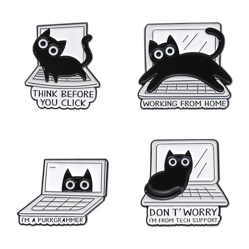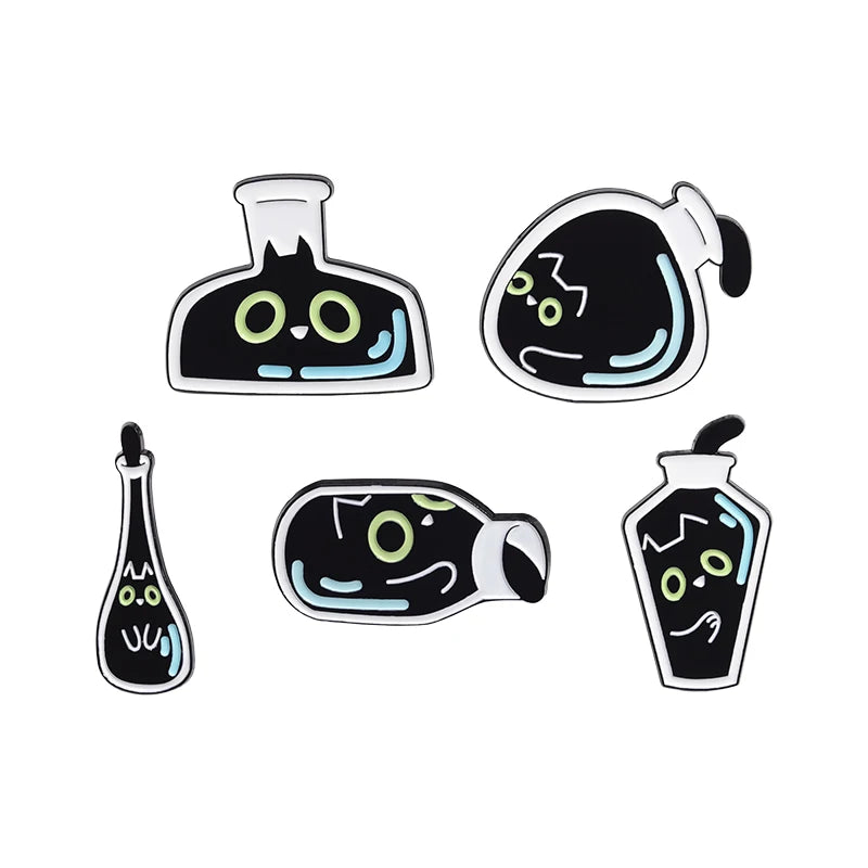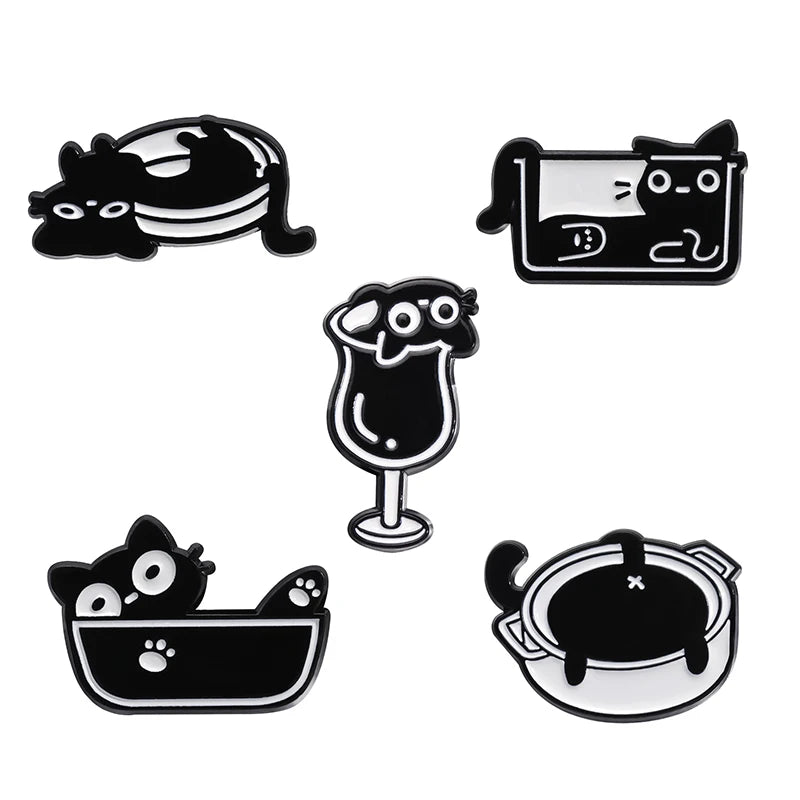 Cute Cat 4-6pcs/Set Enamel Pins Black Fluid Cat Brooches Lapel Badge Punk Animal Jewelry Gift for Friends