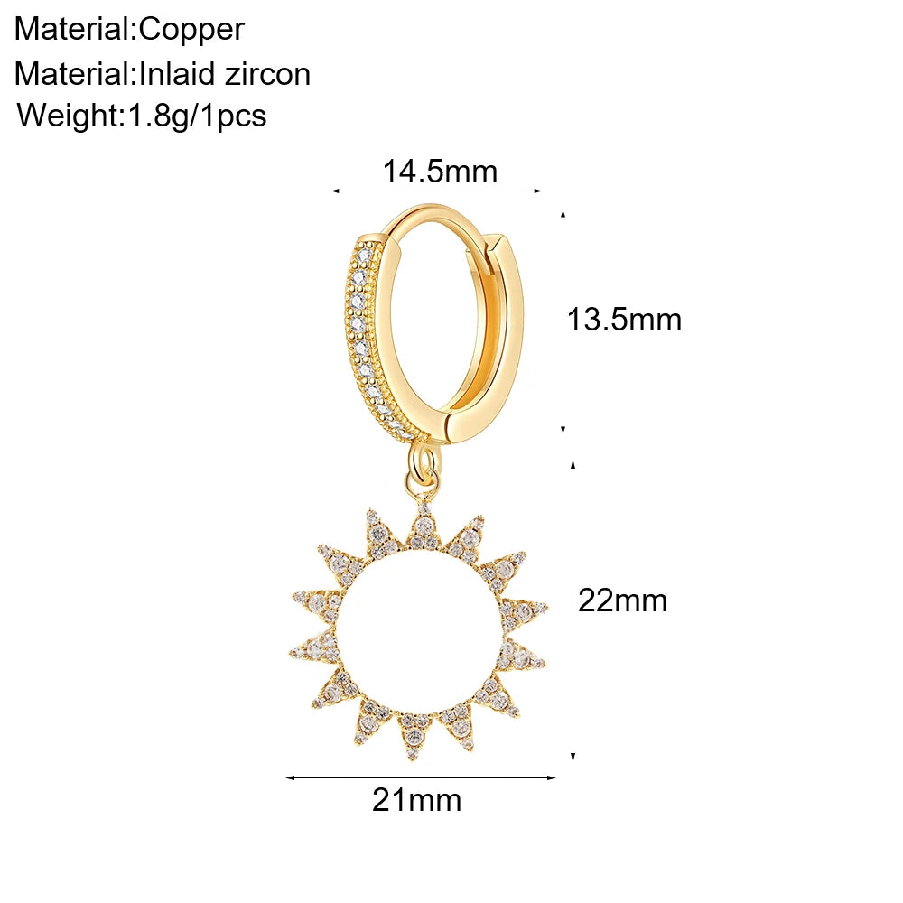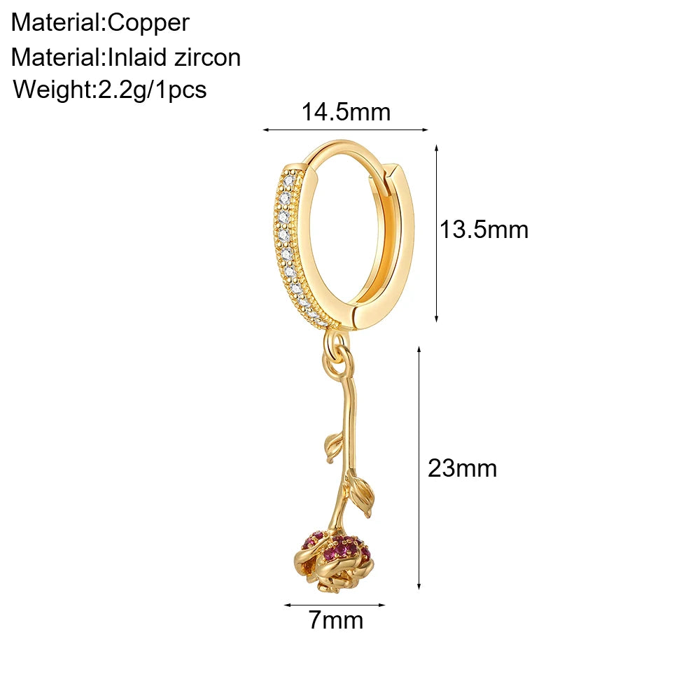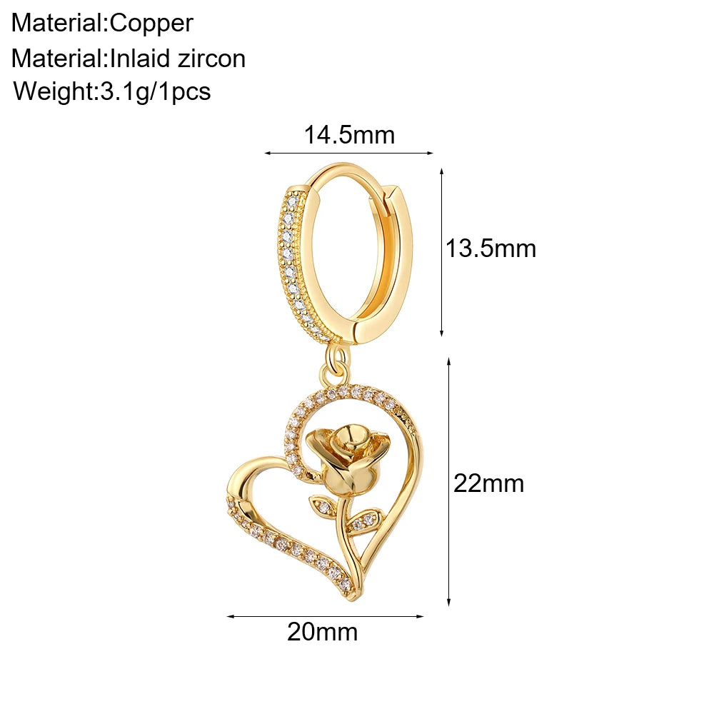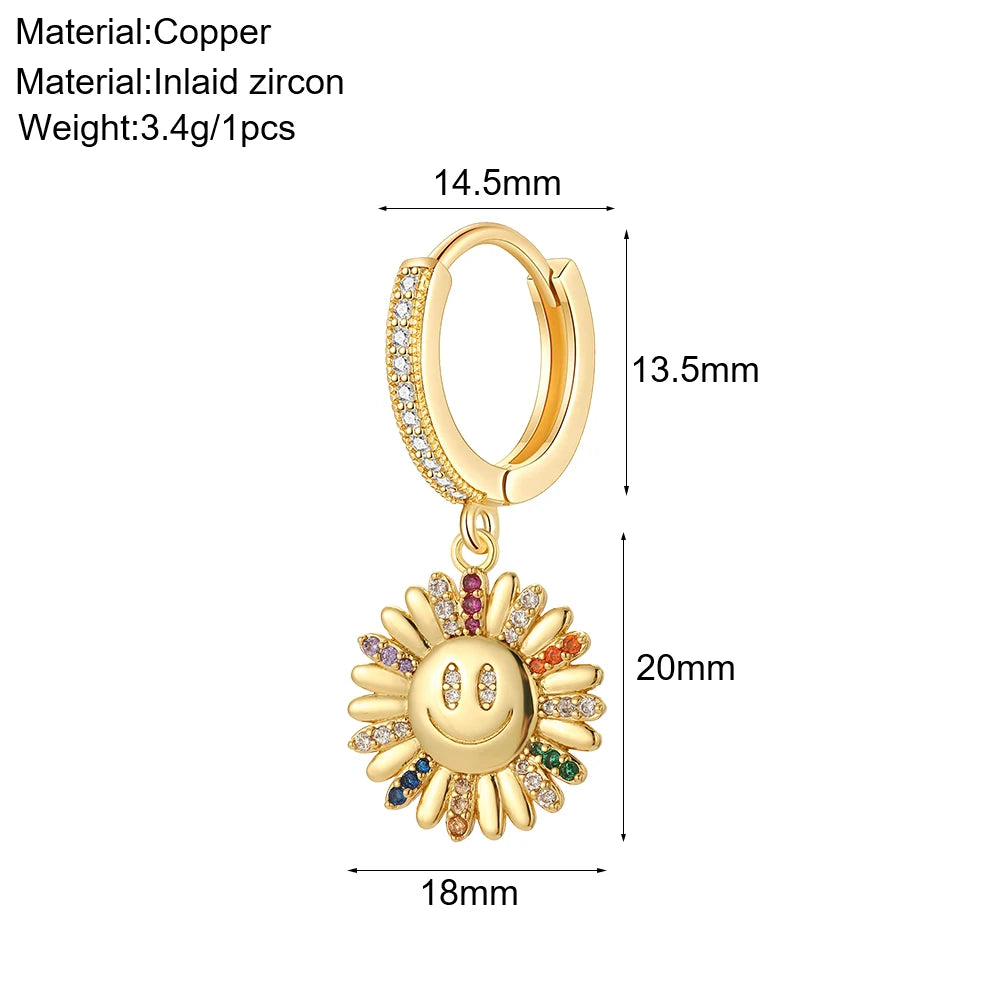 Cute Sun Moon Star Rainbow Red Heart Love Rose Flower Korean Hoop Earrings for Women Gold Color New In Earring High Quality
