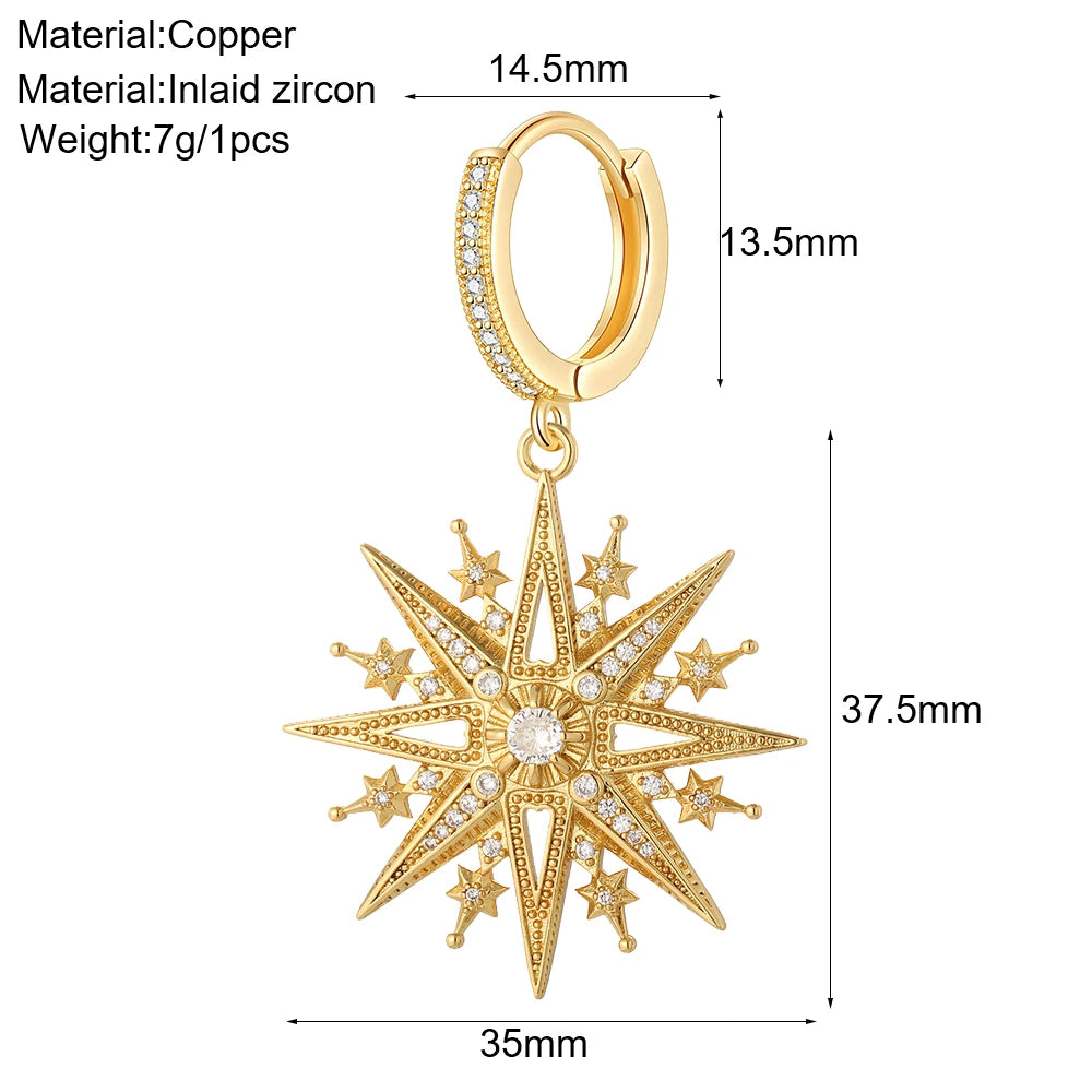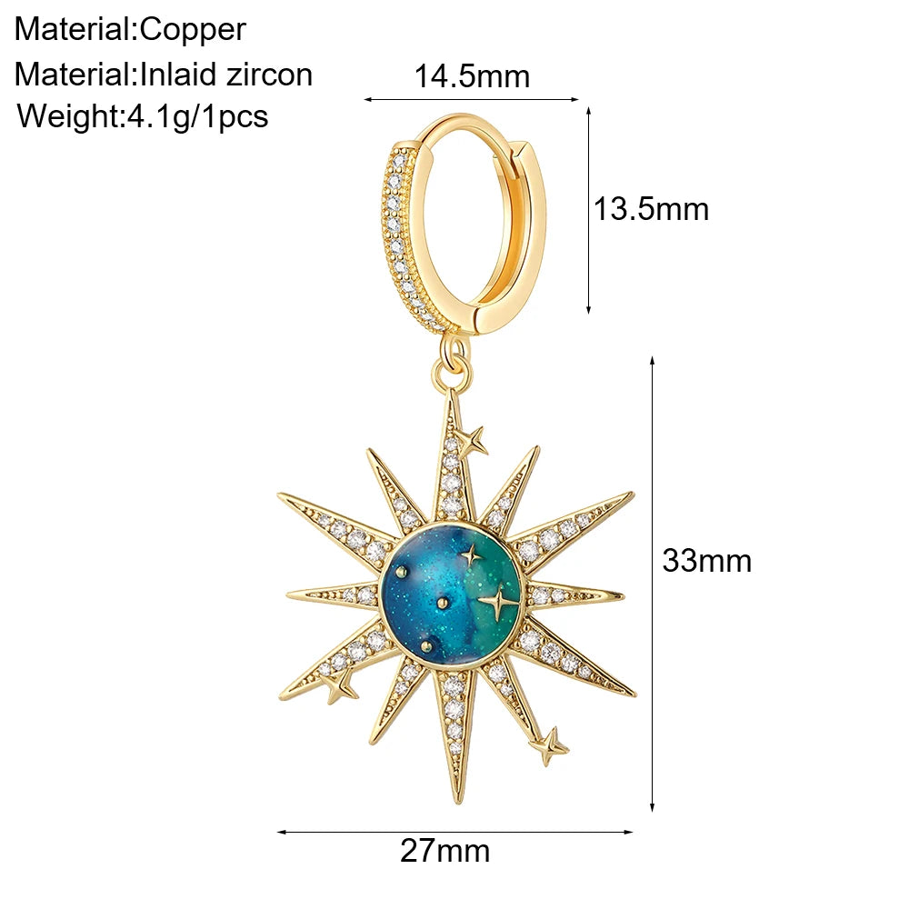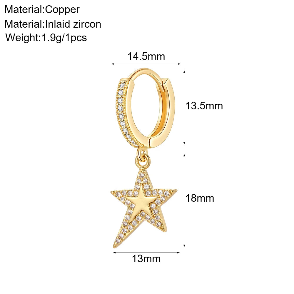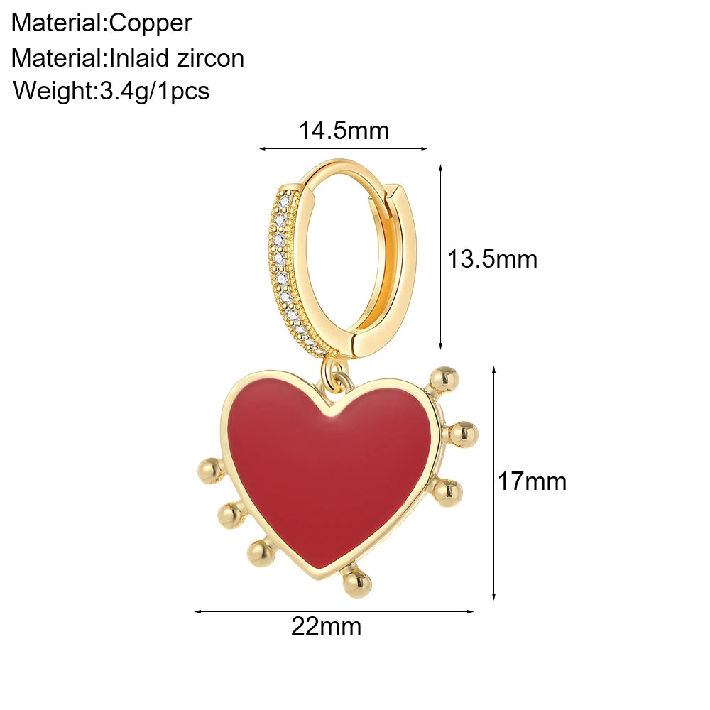 Cute Sun Moon Star Rainbow Red Heart Love Rose Flower Korean Hoop Earrings for Women Gold Color New In Earring High Quality
