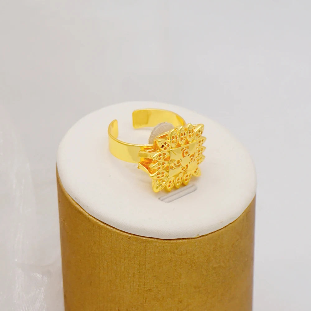 Dubai Gold Color Jewelry Set For Woman Bridal Nigerian African Long Chain Necklace Earrings Bracelet Ring Jewellery Set