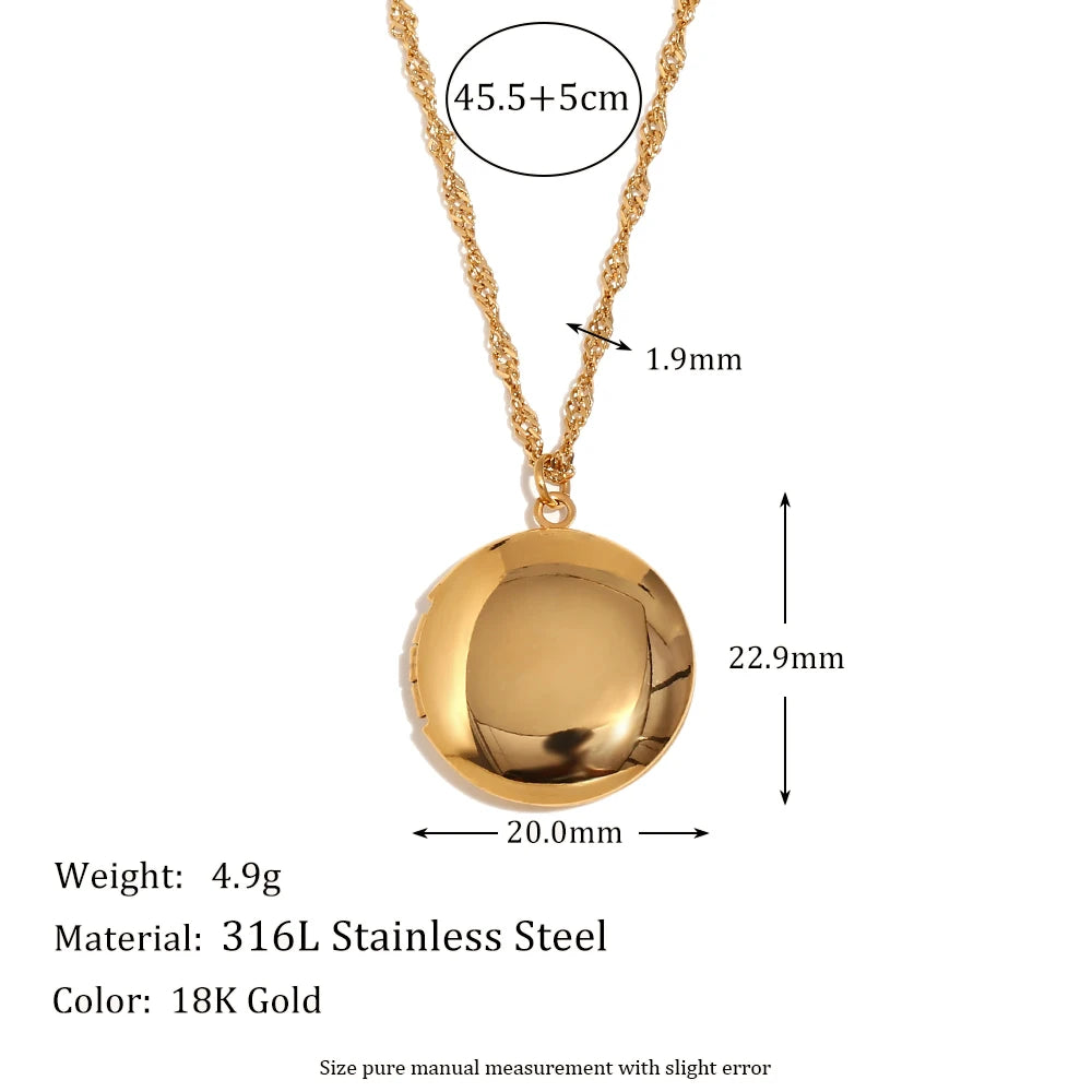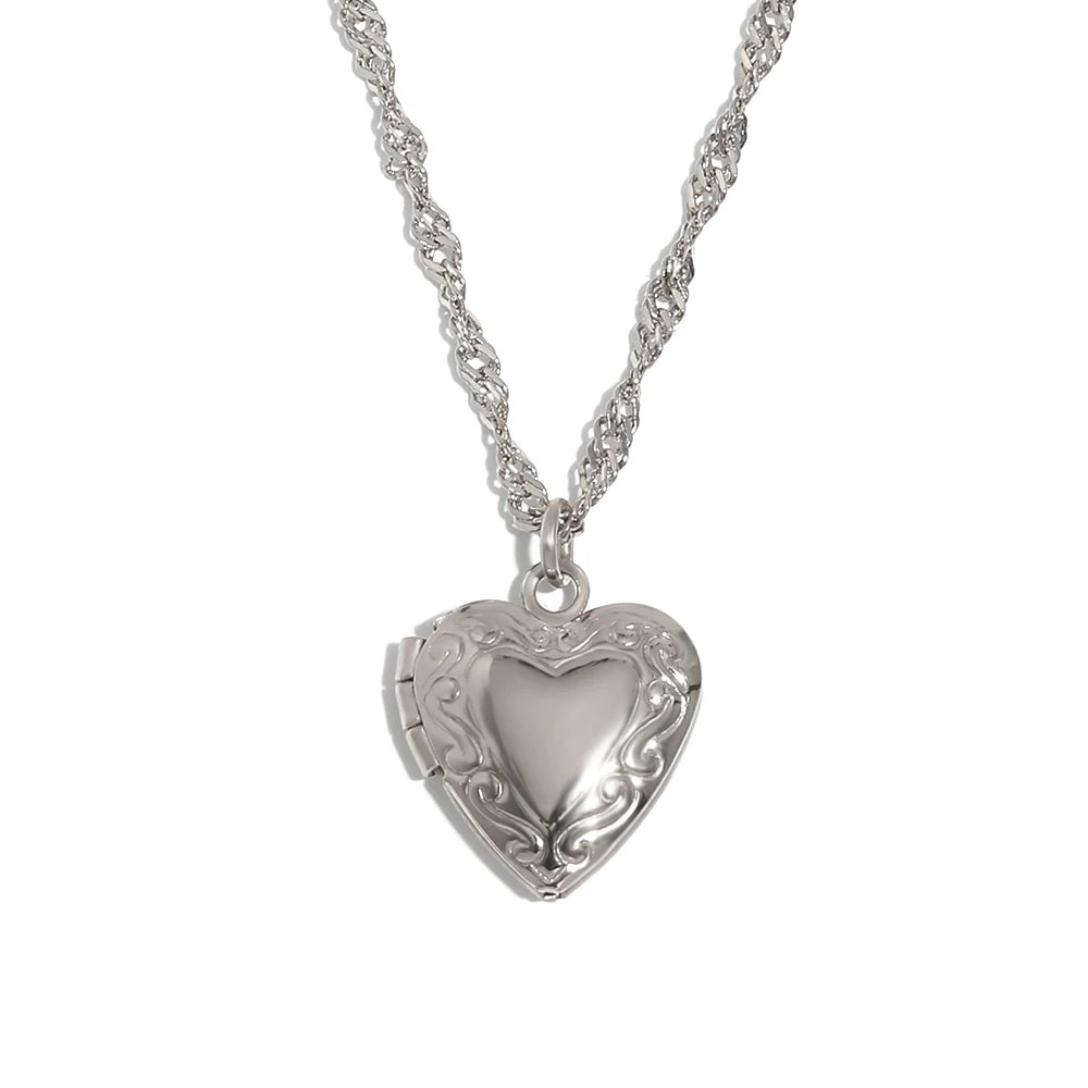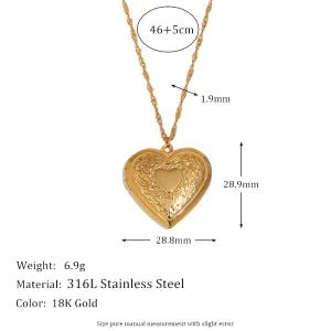 E.B.belle Flower Pattern Hollow Heart Photo Box Pendant Necklace For Women Stainless Steel Jewelry 18K Gold Plated Souvenir Gift