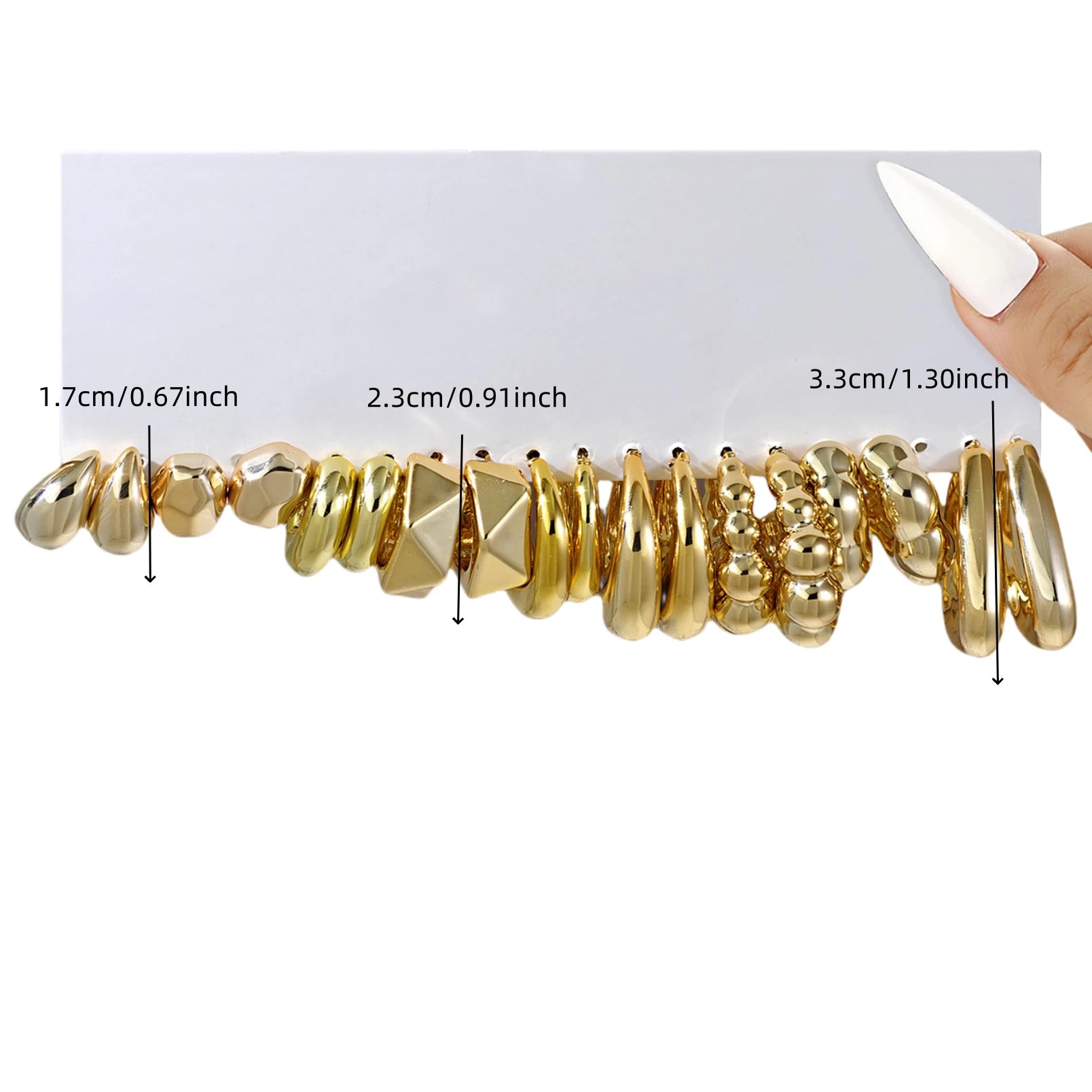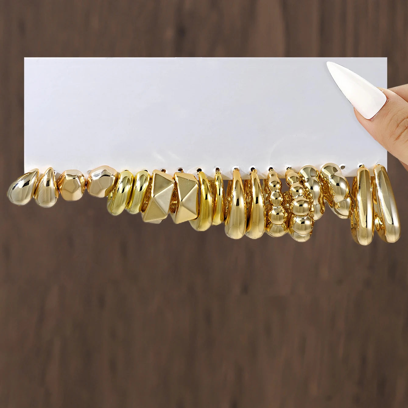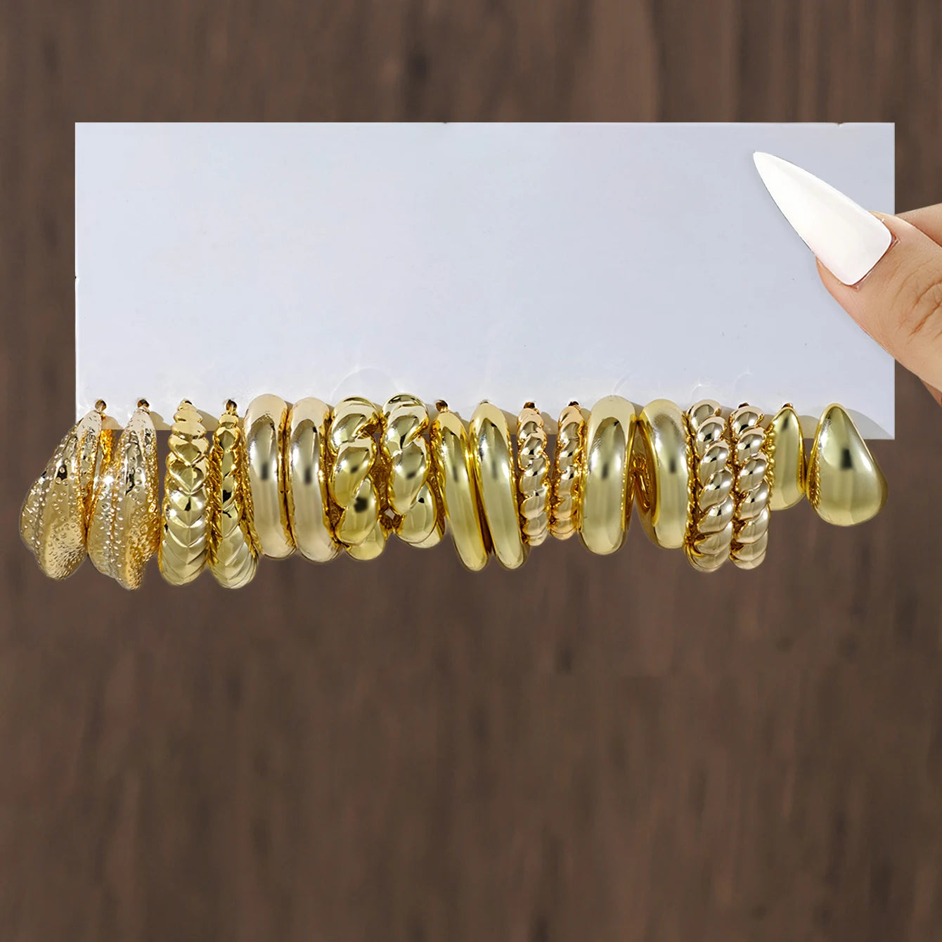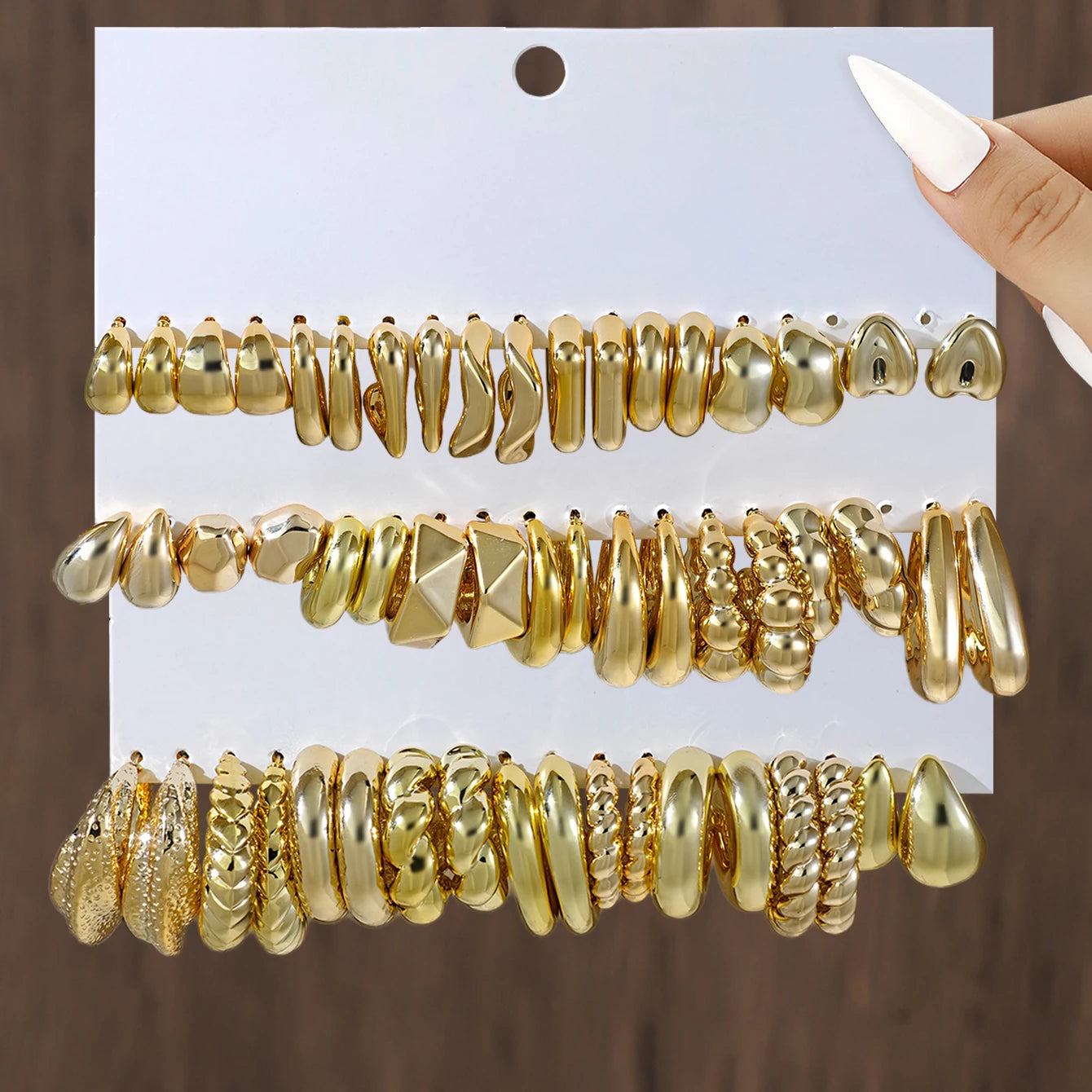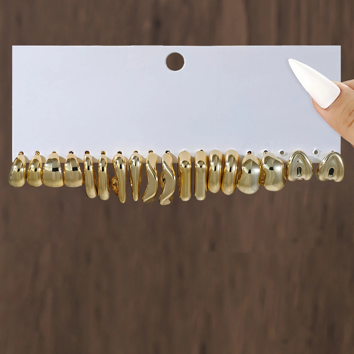 Euro American Cross border Fashion Retro Personalized Exaggerated Geometric C shaped Earrings Set Women Daily Versatile CCB Ligh