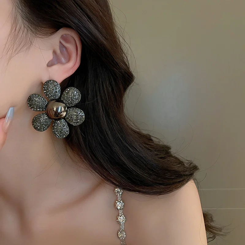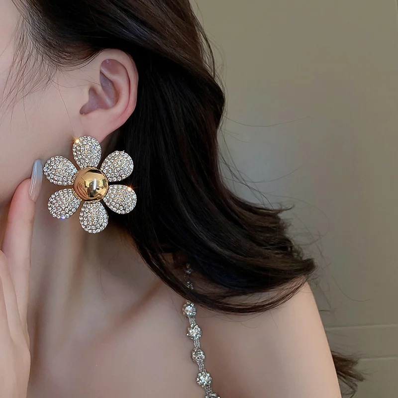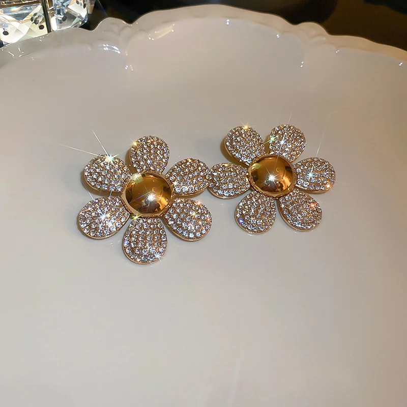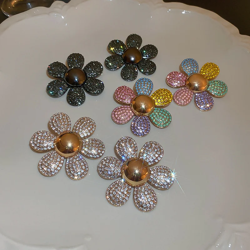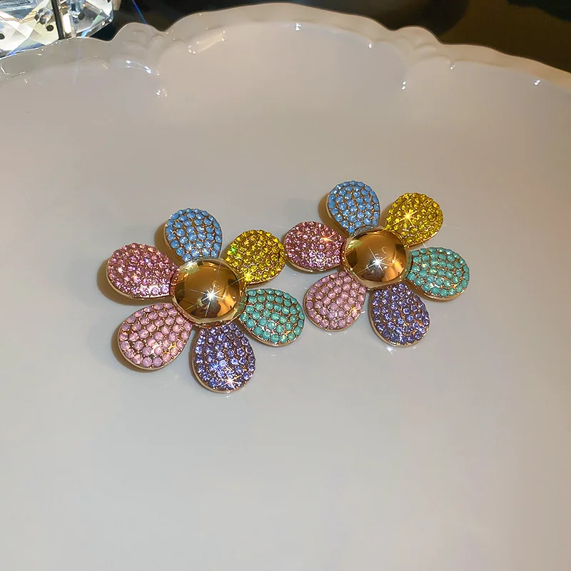 FYUAN Colorful Flower Crystal Stud Earrings for Women Earrings Fashion Jewelry