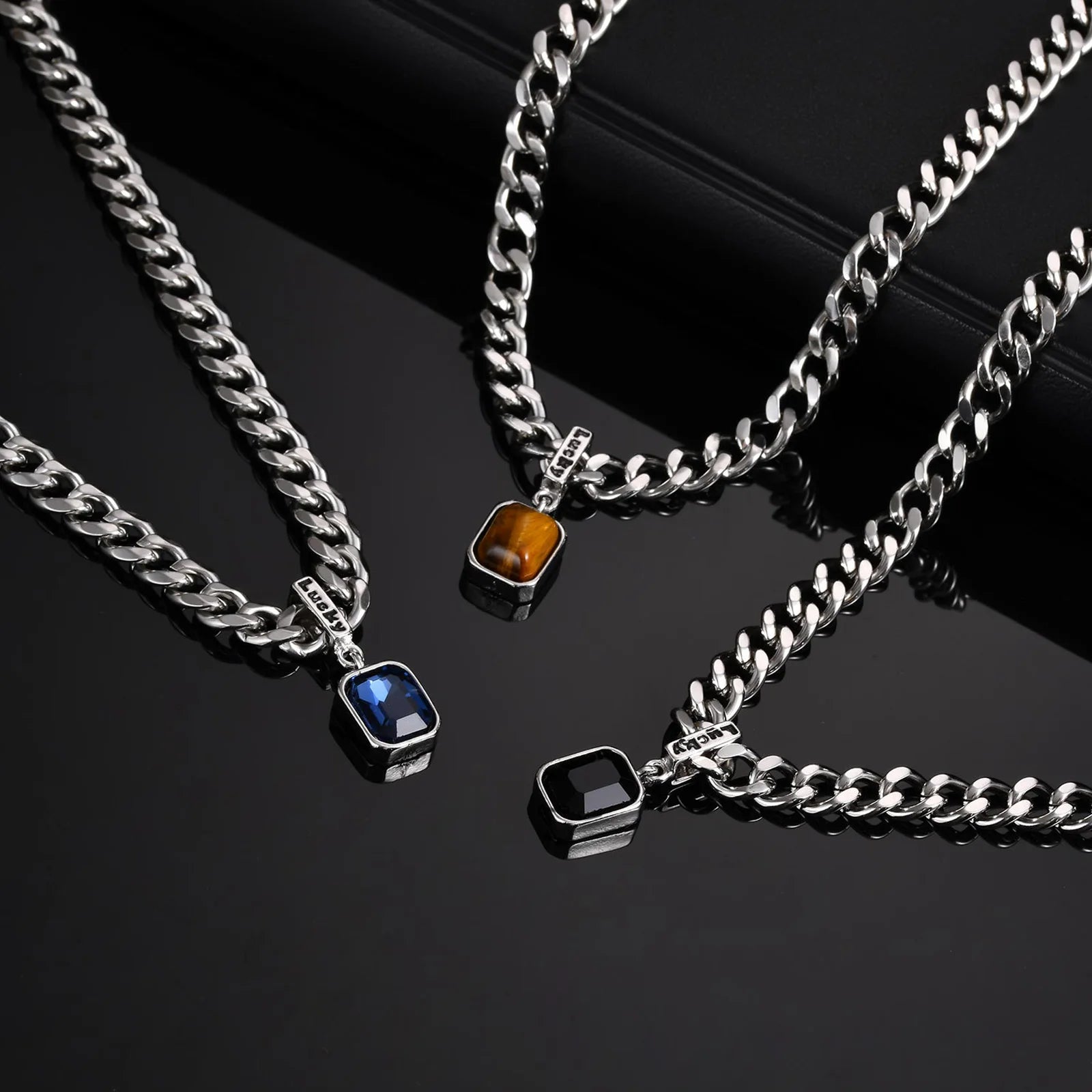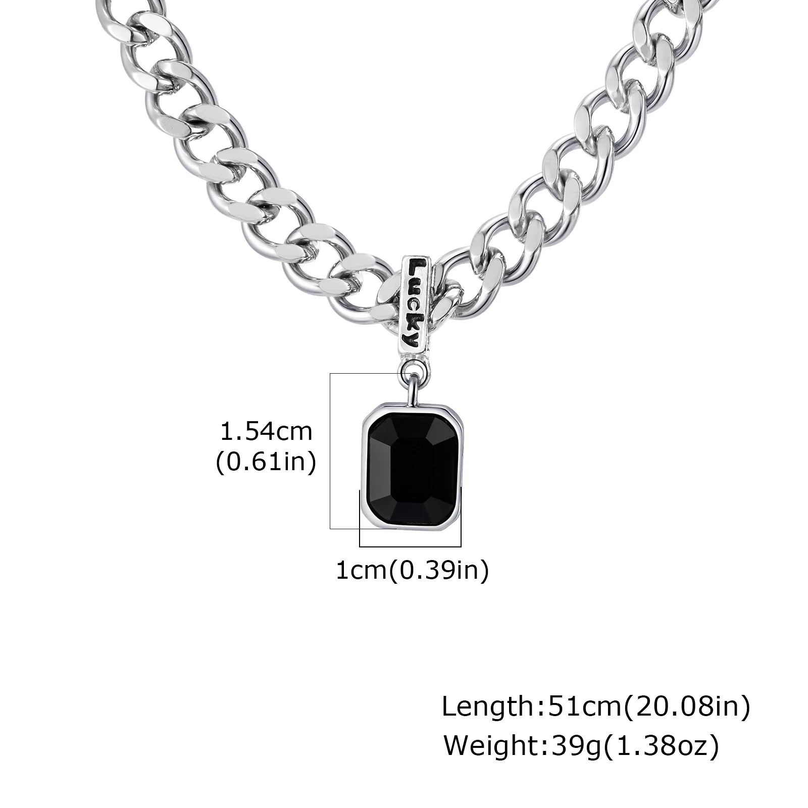Hiphop Chunky Cuban Chain Necklace for Men Boys,Stainless Steel Lucky Words Square Stone Pendant Collar,Trendy Birthday Gift