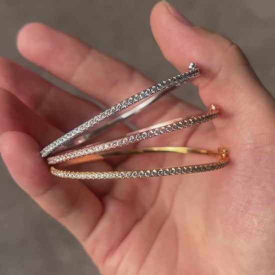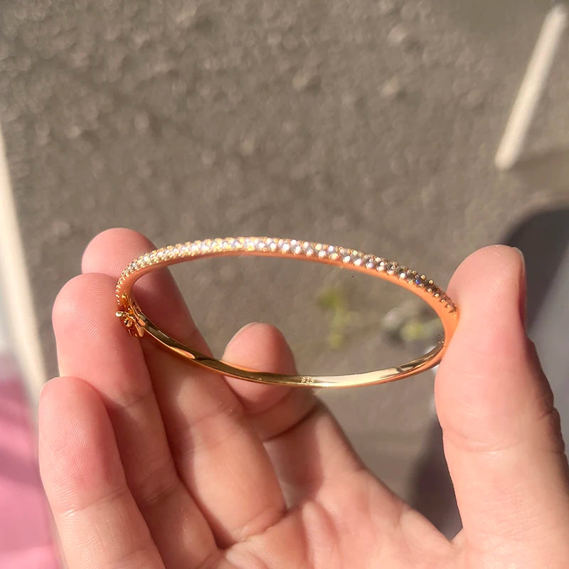 Hot Brand Pure 925 Sterling Silver Jewelry For Women Rose Gold Bangle Diamond Bangle Wedding Jewelry Around Rivet Bangle Jewelry
