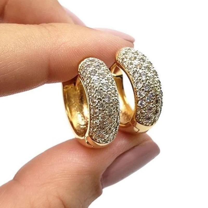Huitan Korean Fashion Paved CZ Hoop Earrings for Women Metal Silver Color/Gold Color Simple Versatile Girls Earrings Hot Jewelry