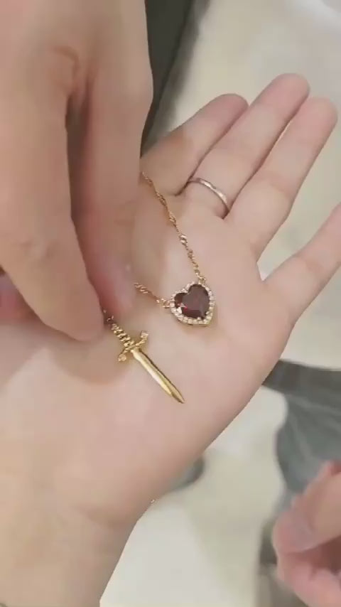 LATS 2pcs Can Be Assembled Heart and Sword Zircon Pendant Necklace for Women Men Couple Silver Gold Plated Choker Chain Jewelry