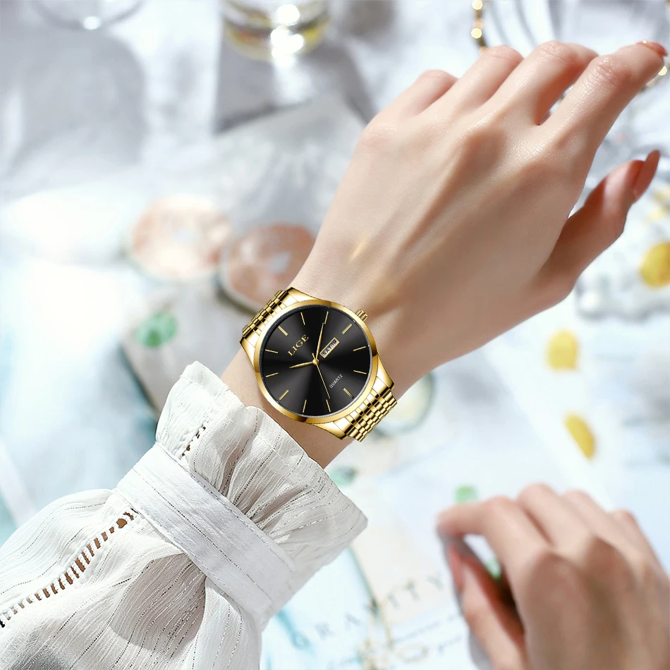 LIGE 2023 New Gold Watch Women Watches Ladies Creative Steel Women's Bracelet Watches Female Waterproof Clock Relogio Feminino
