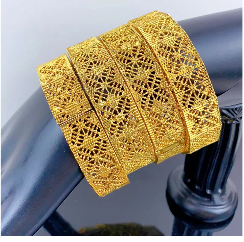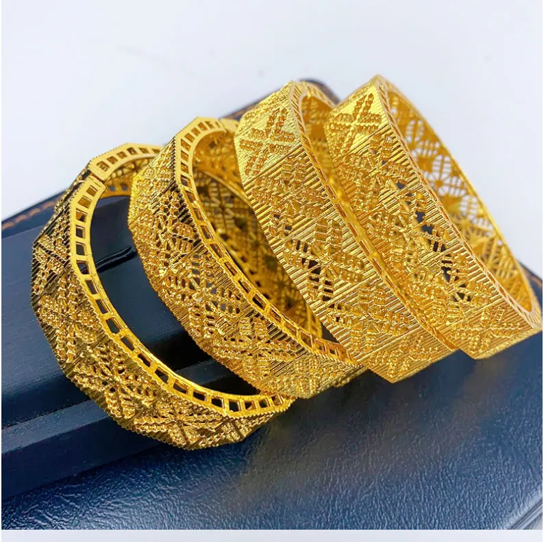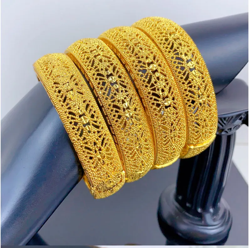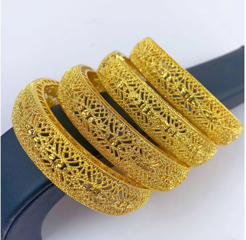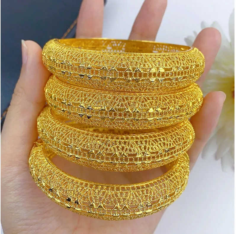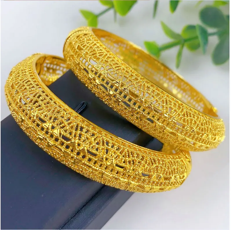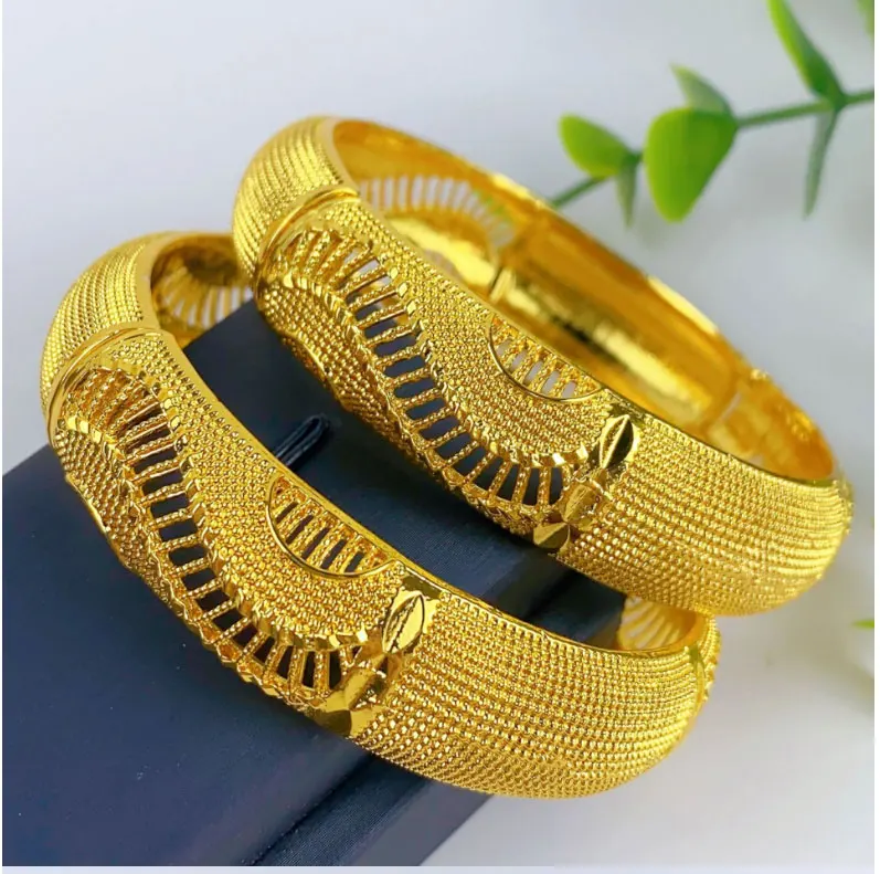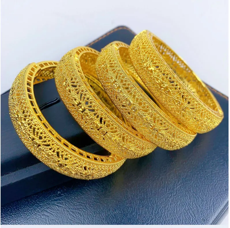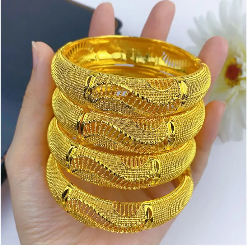 Luxury Dubai Gold Color Bangles For Women 24K Gold Plated Indian African Bracelets Charm Wedding Ethiopian Arabic Hand Jewelry