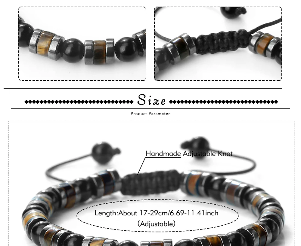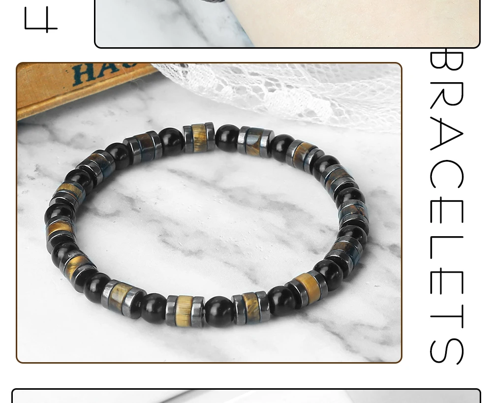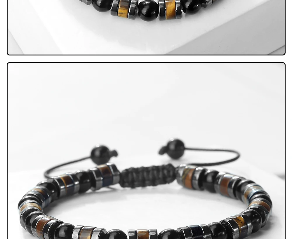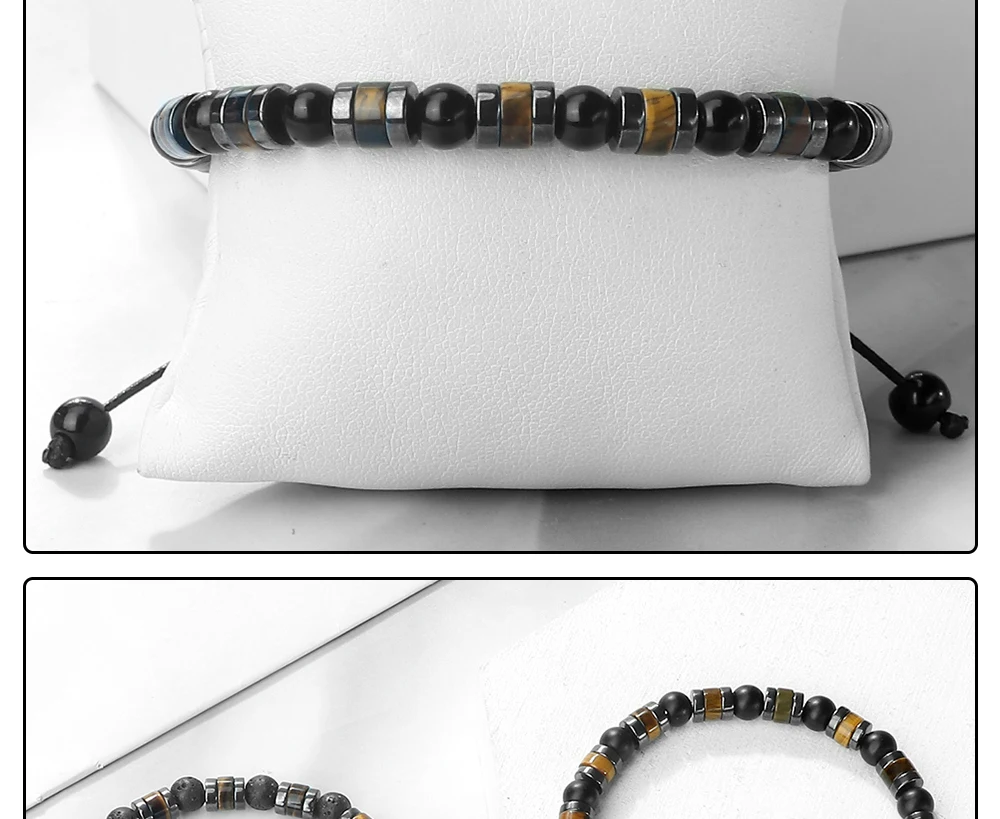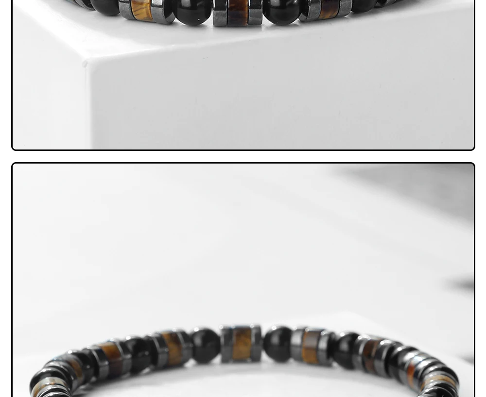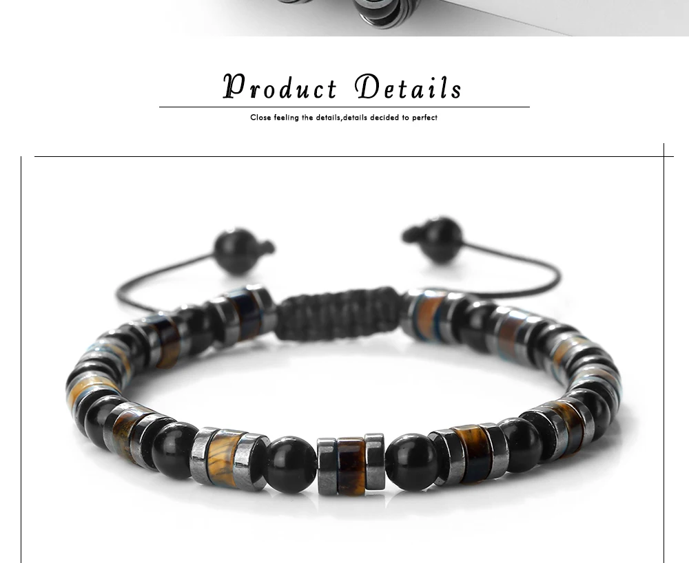 Men Bracelet Natural Tiger Eye Stone Cylindrical Beads Bracelets Hematite Spacer Handmade Adjustable Bangles Women Yoga Jewelry