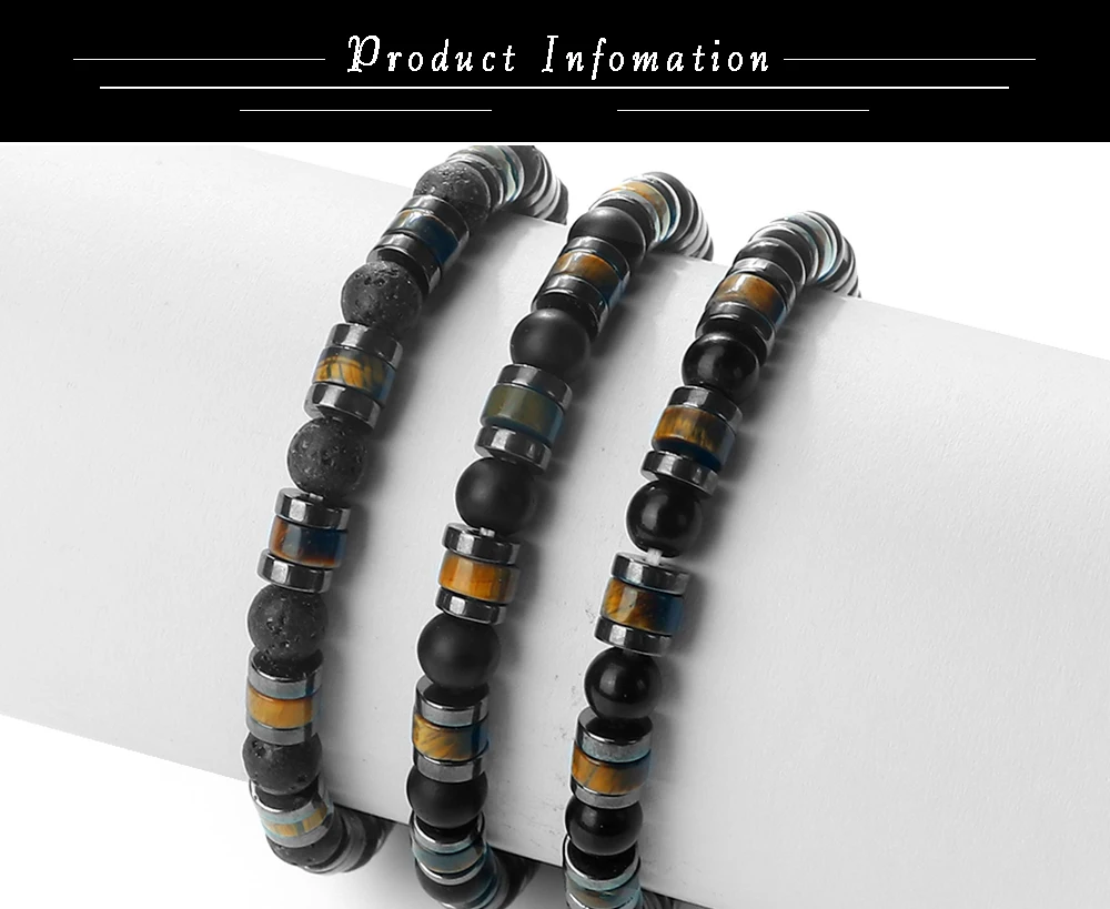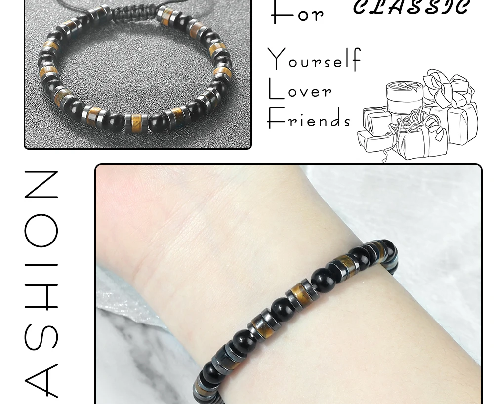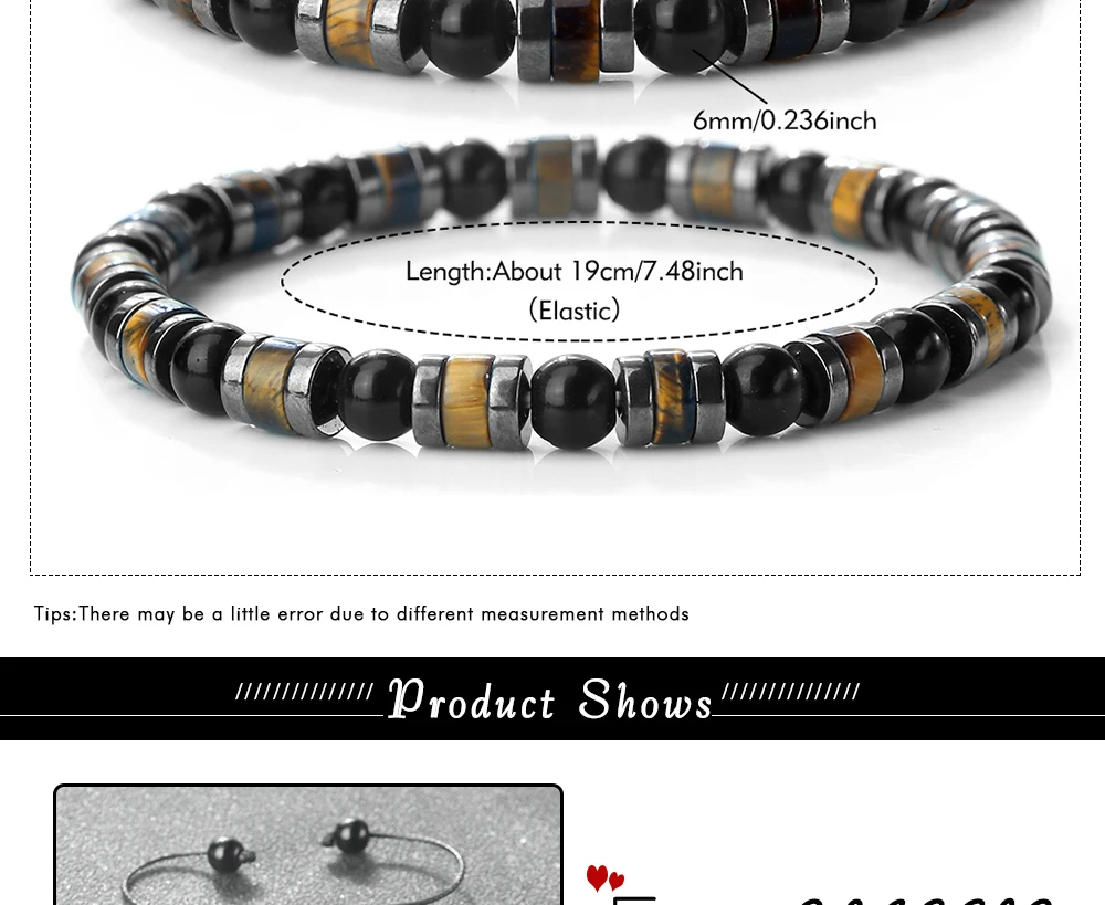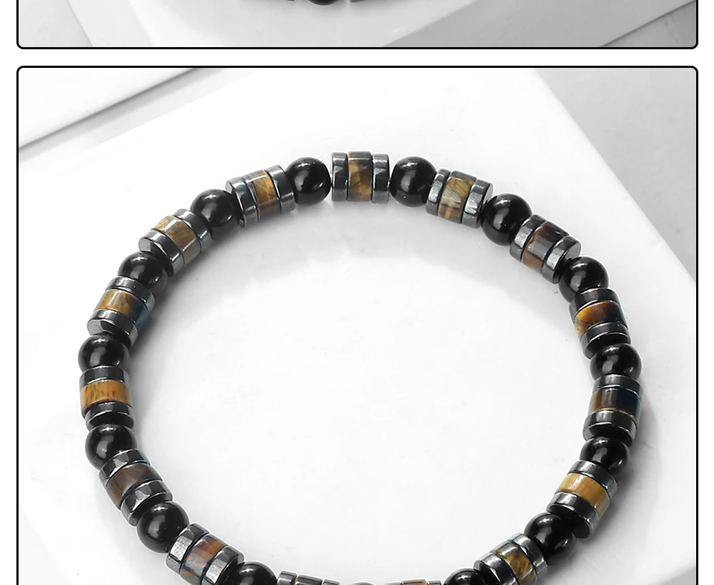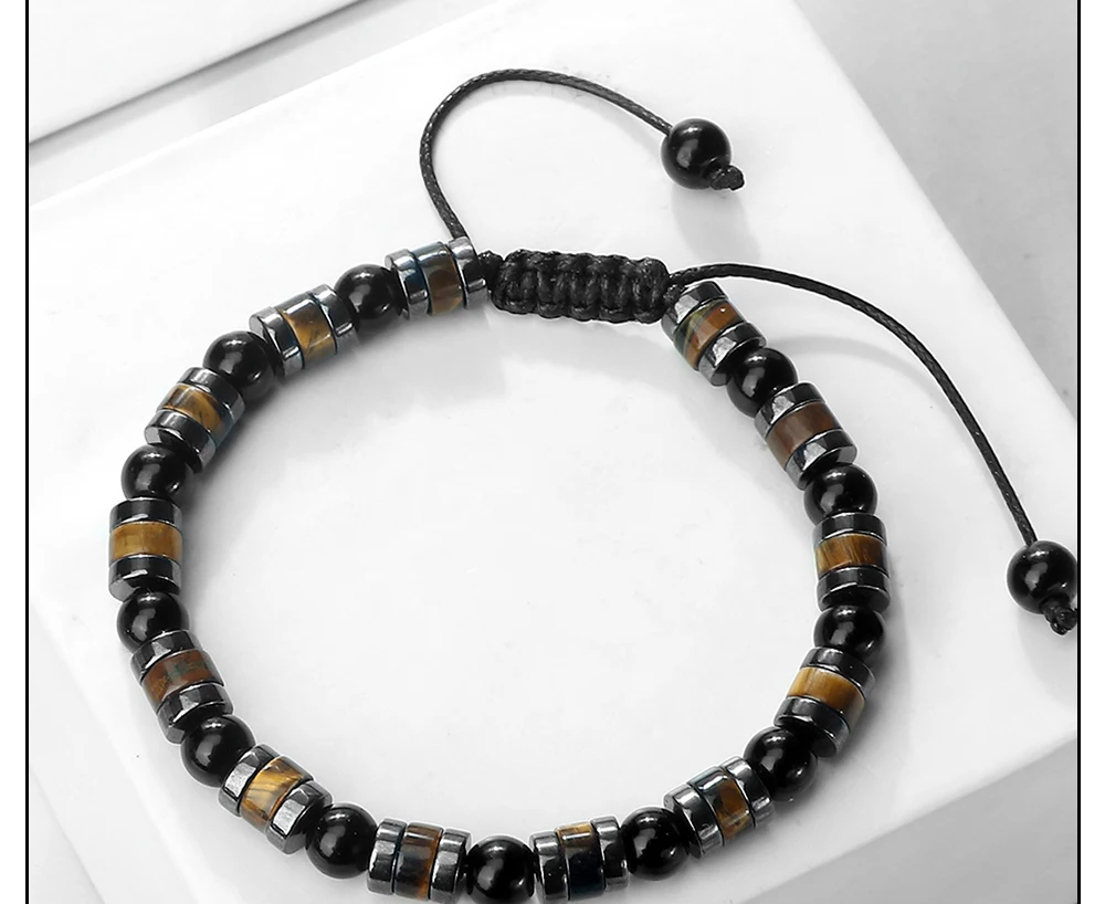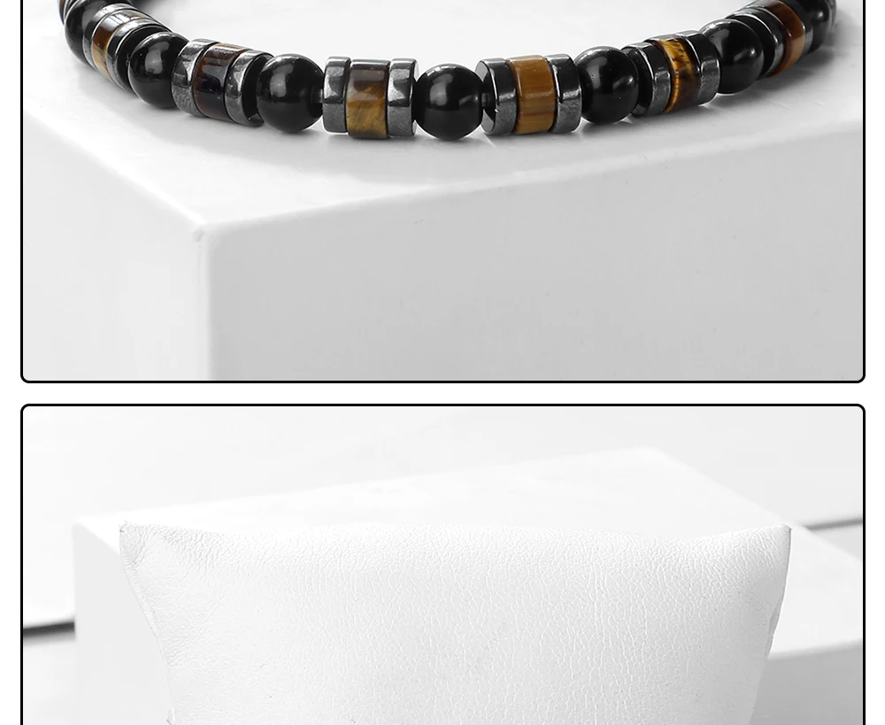 Men Bracelet Natural Tiger Eye Stone Cylindrical Beads Bracelets Hematite Spacer Handmade Adjustable Bangles Women Yoga Jewelry