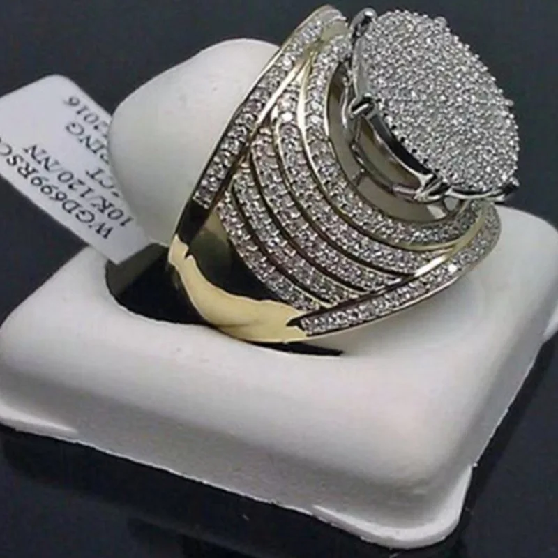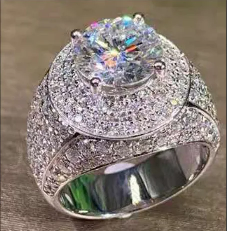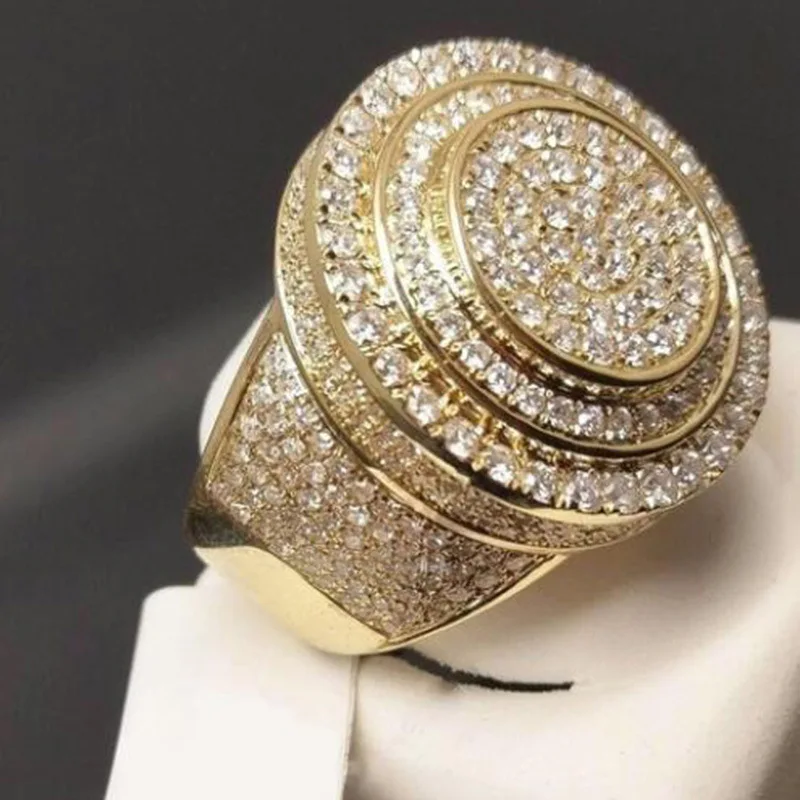 Milangirl Clear Cubic Zircon Luxurious Round Men Ring Wedding Band Male Rings Punk Rock Hip Hop Jewelry