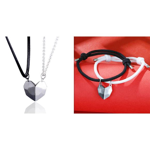 Minimalist Lovers Matching Friendship Heart Pendant Couple Magnetic Distance Faceted Heart Pendant Necklace Couple Jewelry