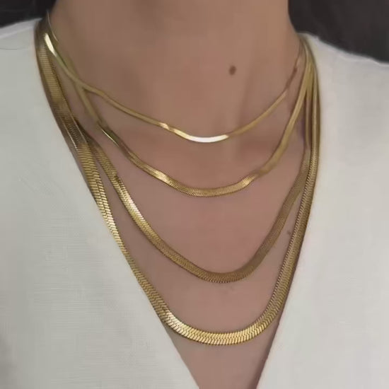Minimalist Unisex Snake Chain Necklace Choker Stainless Steel Herringbone Gold Color Fashion Jewelry Gift For Her Women and Men