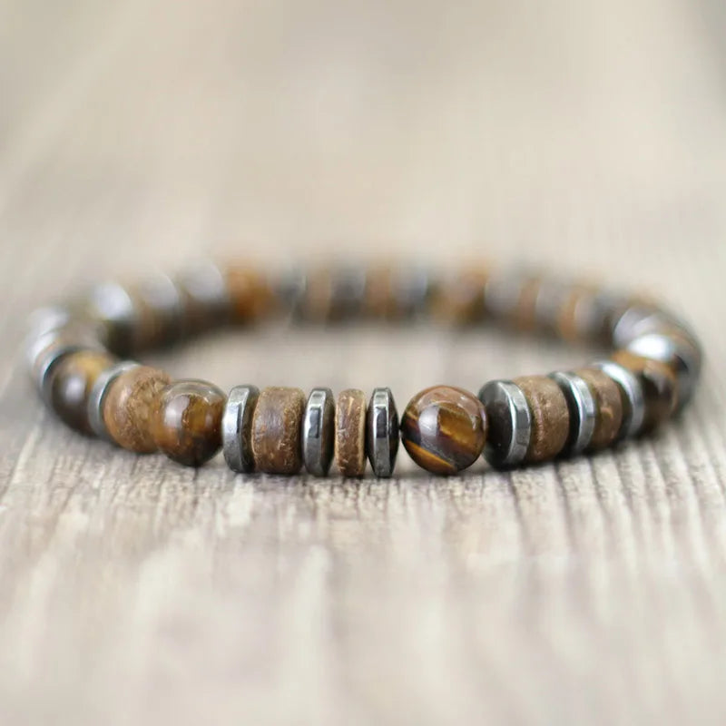 Natural Wooden Bracelet Homme Black Hematite Stone Beaded Braclet Men Accessories Casual Jewelry Tiger Eyes Volcanic Braslet