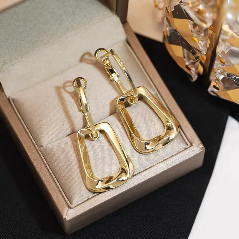 New 2025 Simple Smooth 14K Gold Plated Earrings Women's Dangles Luxury Chunky Earring Hoop Dangles Ins Ladies Gifts for Girls