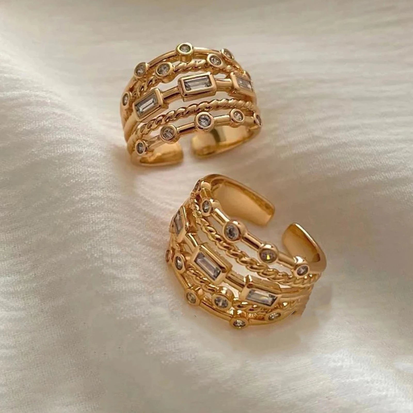 Nwe 18 K Gold Plated Sun Rings for Women Natural Stone Inlaid in Hollow Metal Texture Ring Trendy Jewelry