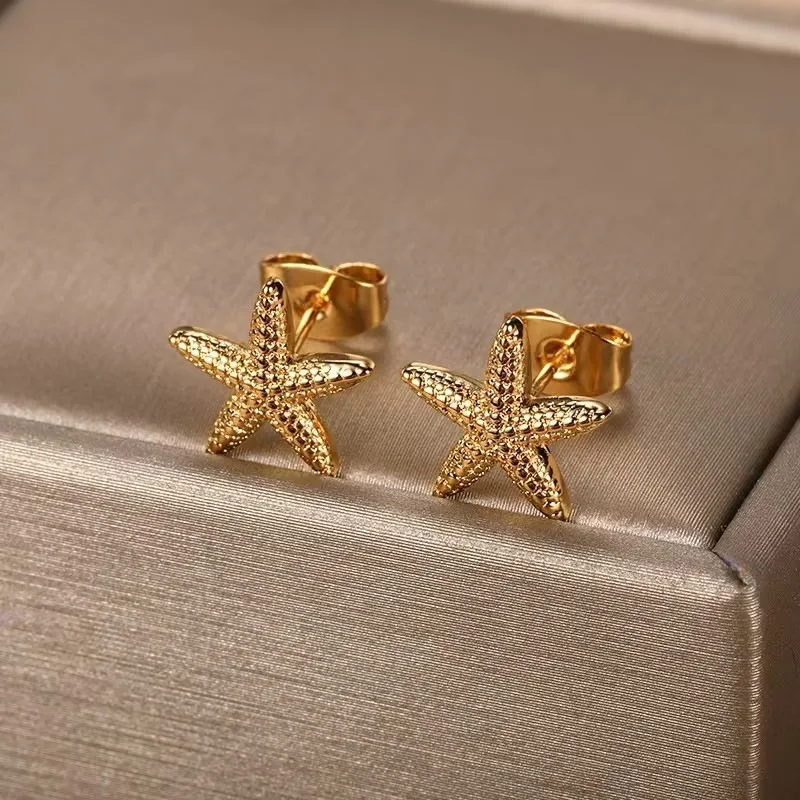 Punk Metal Starfish Stud Earrings for Women Fashion Gold Color Star Geometric Temperament Earrings Summer Jewelry Gift