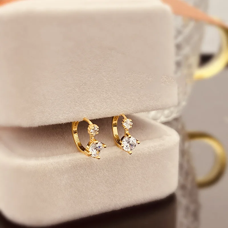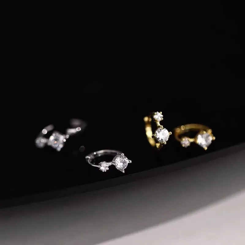 silver 925 simple classic Large and small diamond earrings for women unique design trend style suitable for daily jewelry gifts