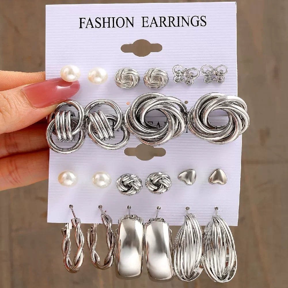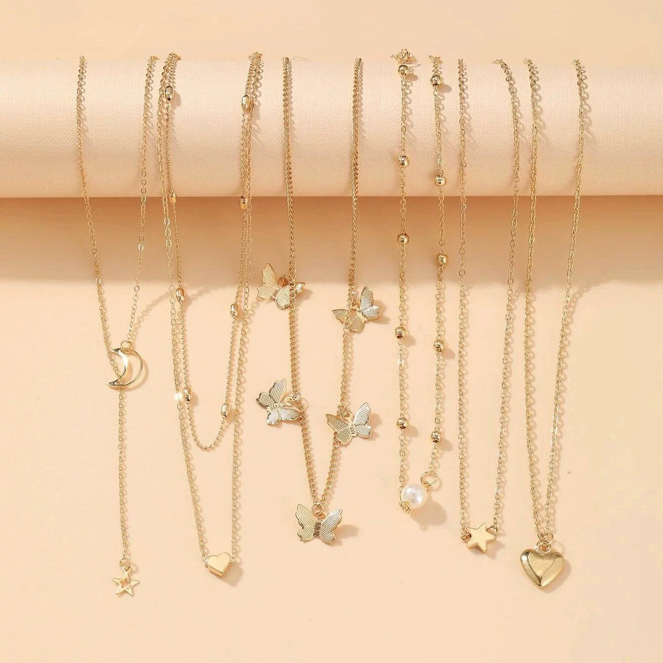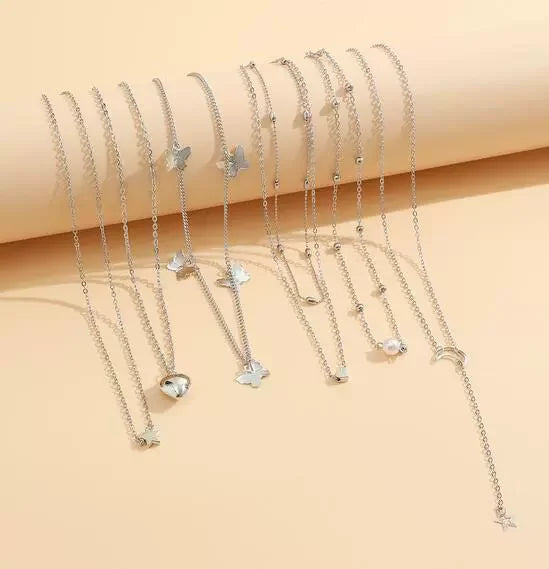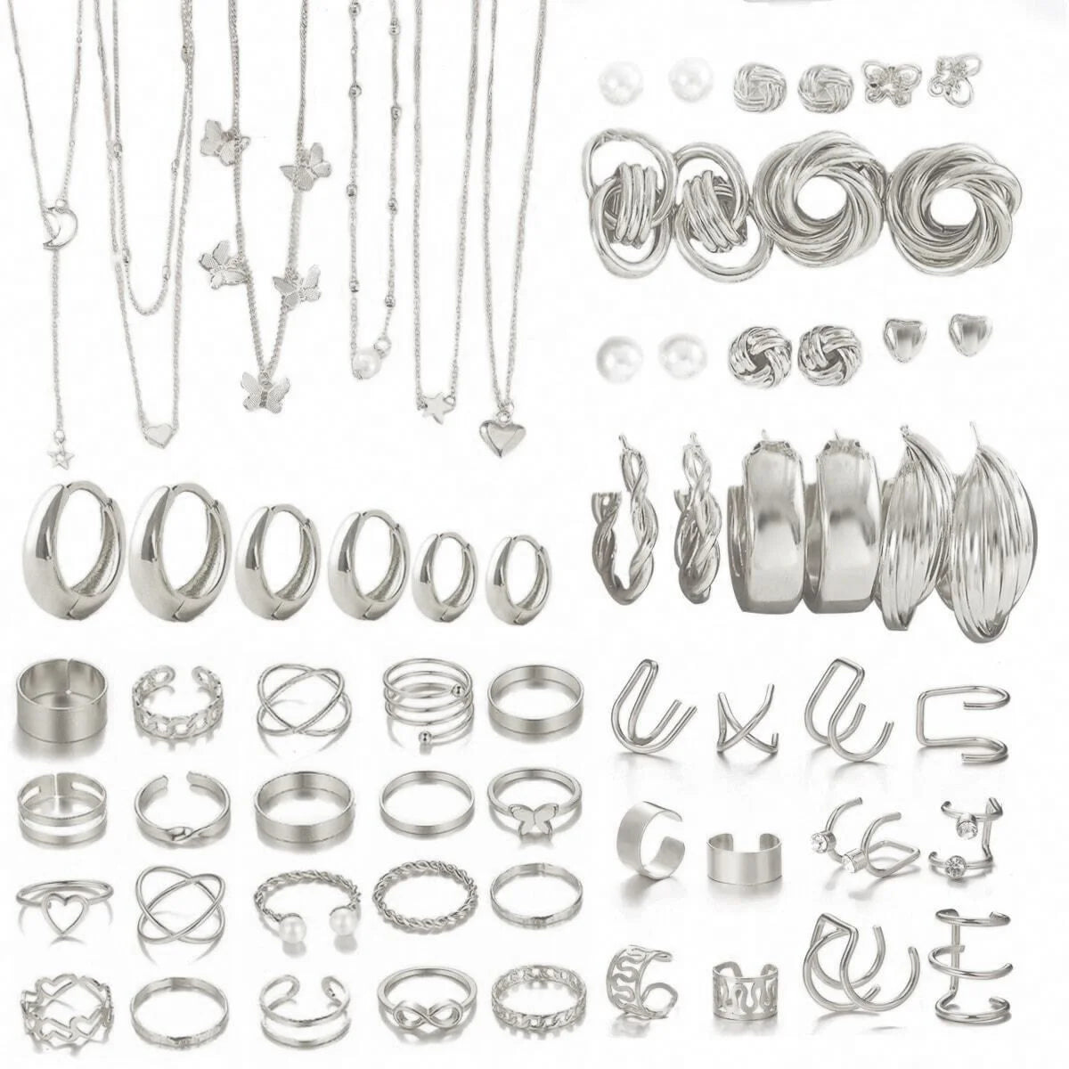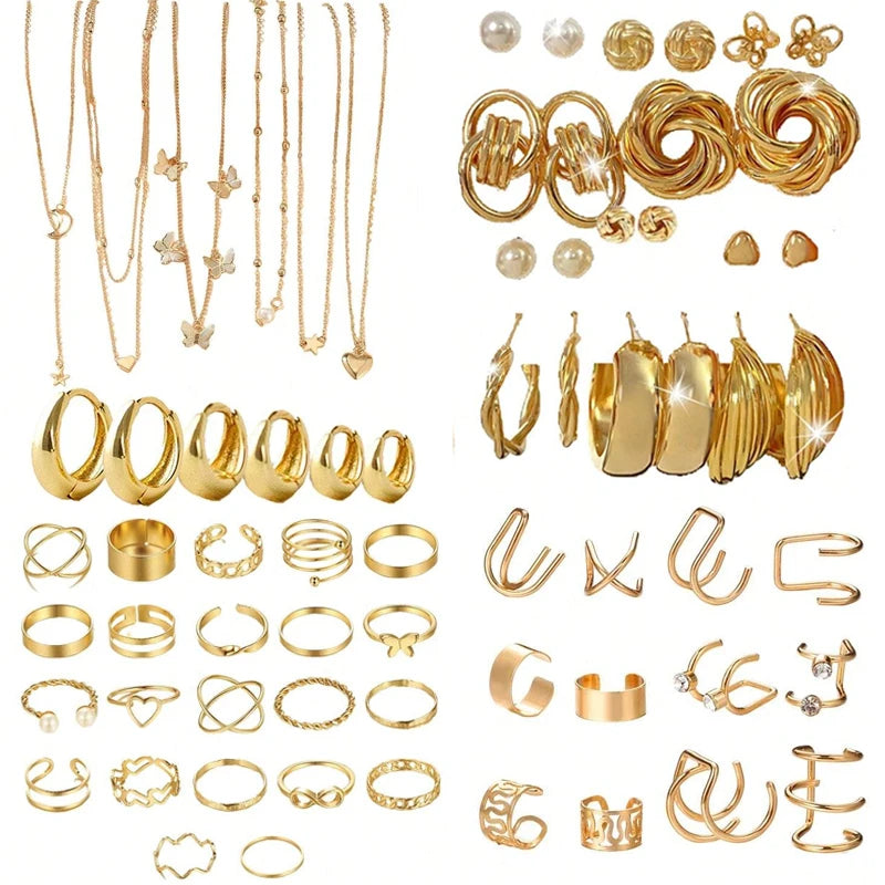 Simple Metal Geometric Butterfly Love Star Earrings Necklace Ring Fashion Jewelry Sets for Women Daily Wear Party Vacation Gifts