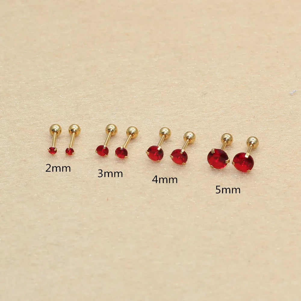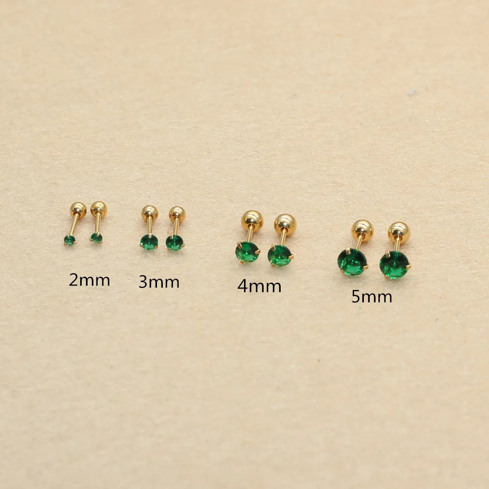 Size From 2mm to 5mm Stainless Steel Green Red Color Round Stond Screw-Back Stud Earrings No Fade Allergy Free Brief Jewelry