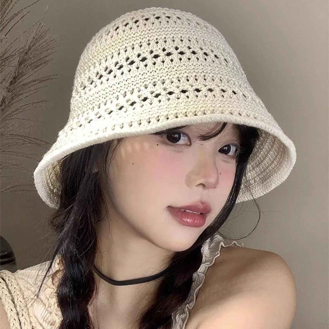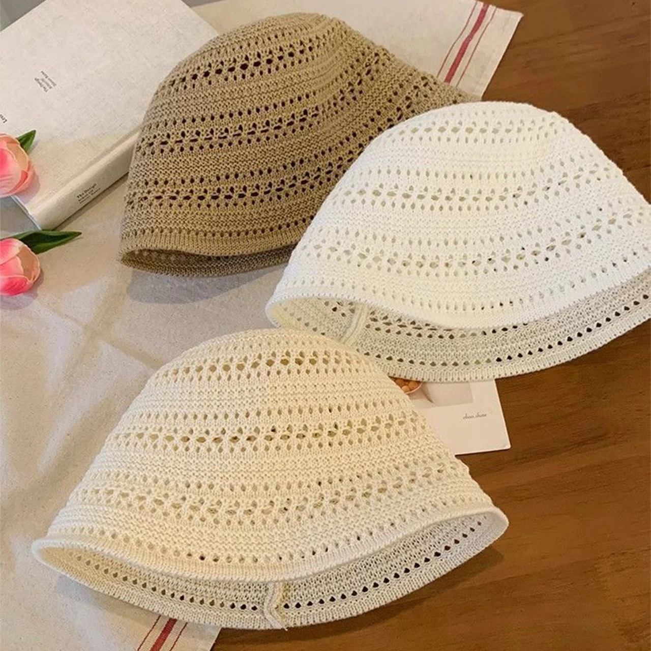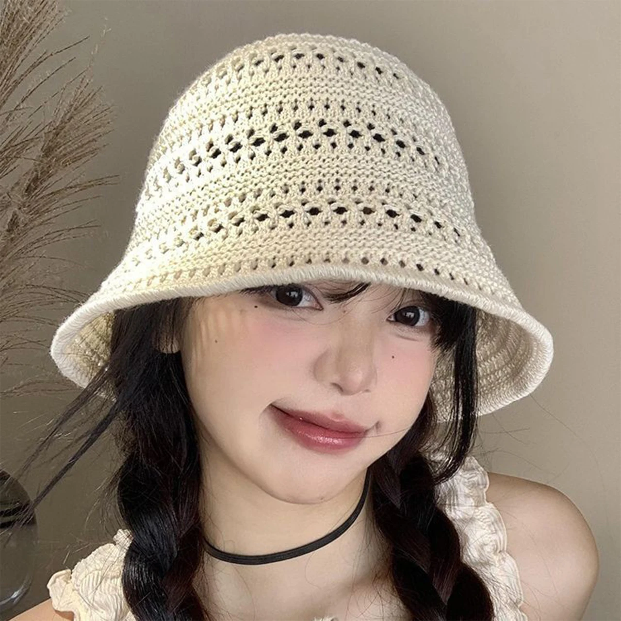 Solid Color Hollow Bucket Hat for Women Summer Breathble Sunshade Dome Basin Fisherman Cap Girls Casual Outdoor Hat