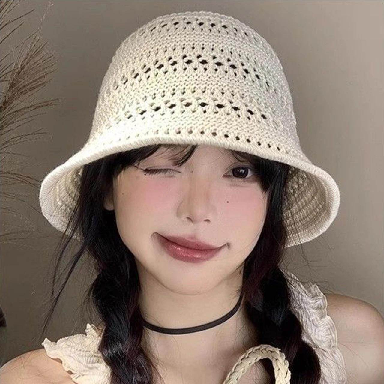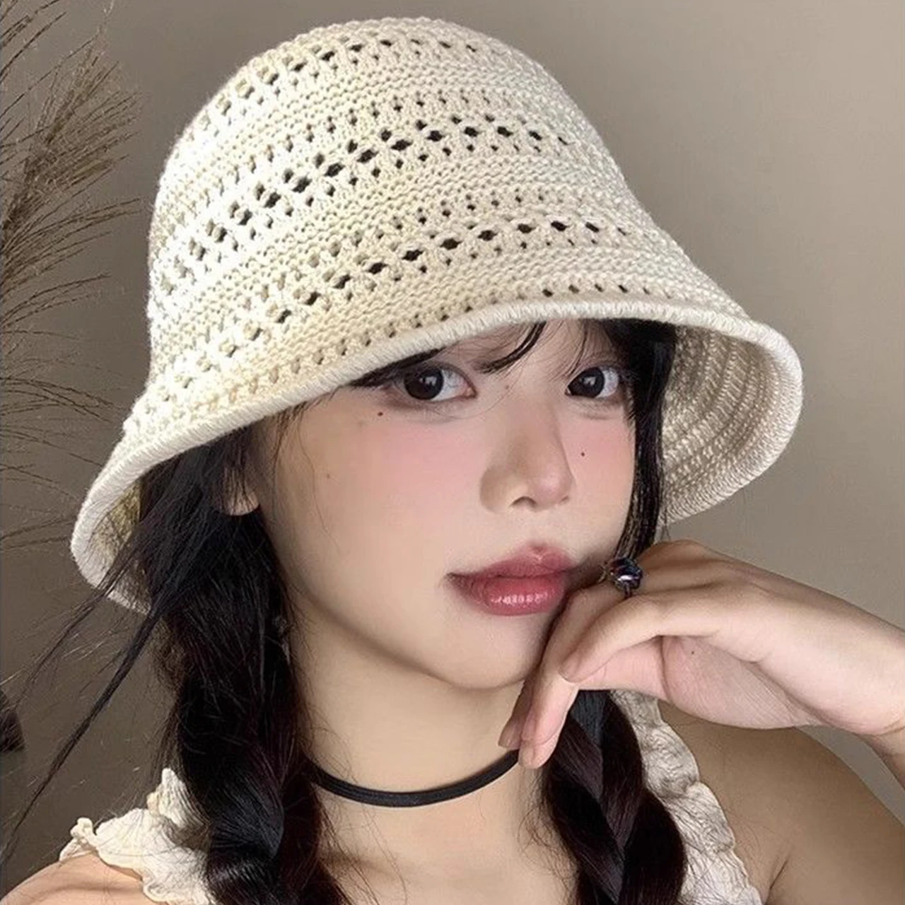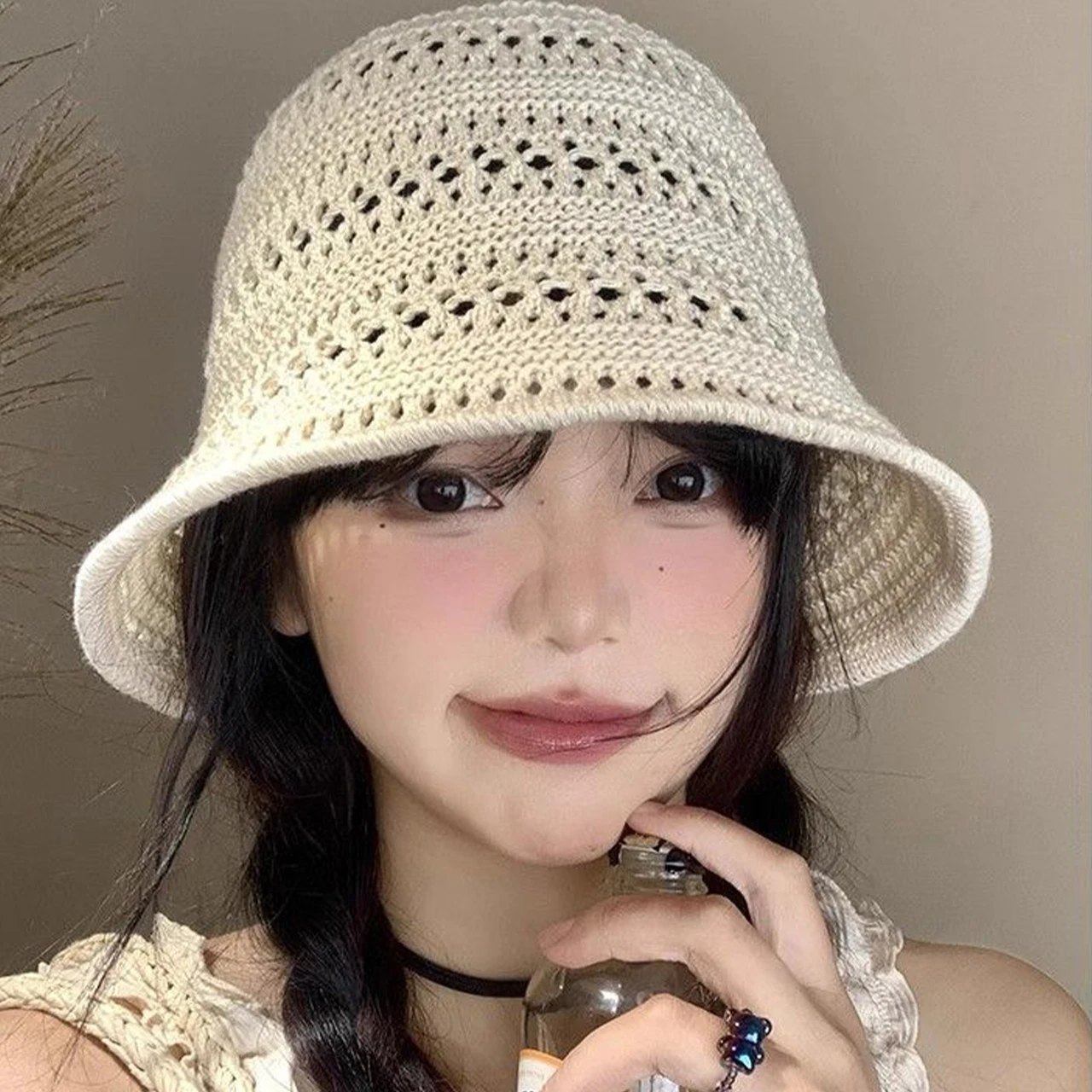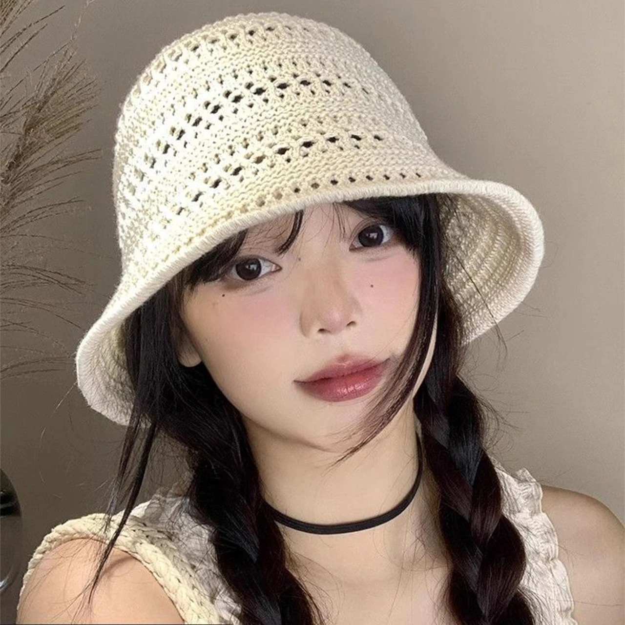 Solid Color Hollow Bucket Hat for Women Summer Breathble Sunshade Dome Basin Fisherman Cap Girls Casual Outdoor Hat