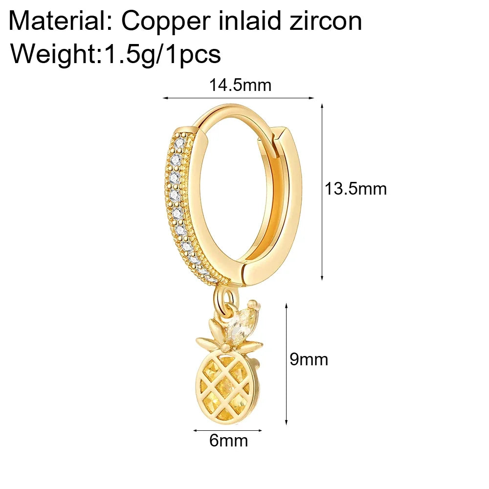 Sun Cute Fruit Hoop Earrings for Women Gold Color Heart Evil Blue Eye Dangle Earrings Micro Pave CZ New in Fashion Jewelry