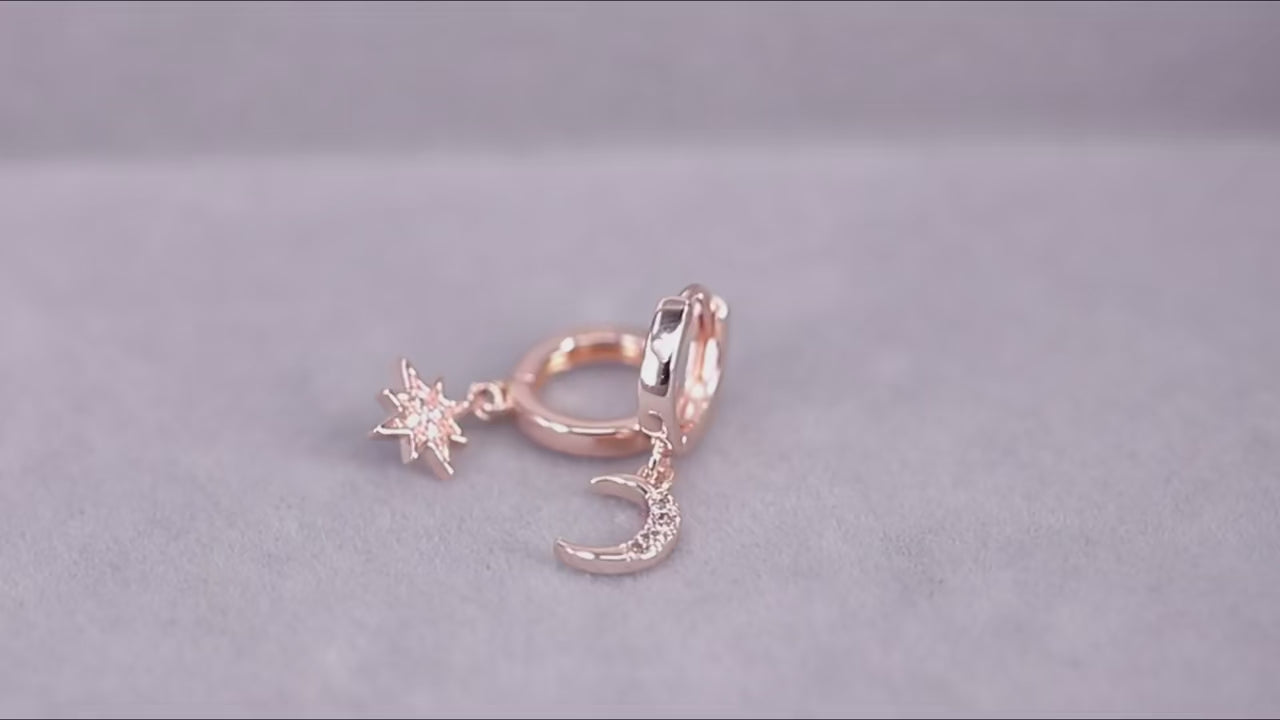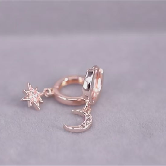 VENTFILLE 925 Sterling CZ Star Moon Asymmetric Hoop Earrings for Women Girls Gold Silver Color Party Jewelry Gifts