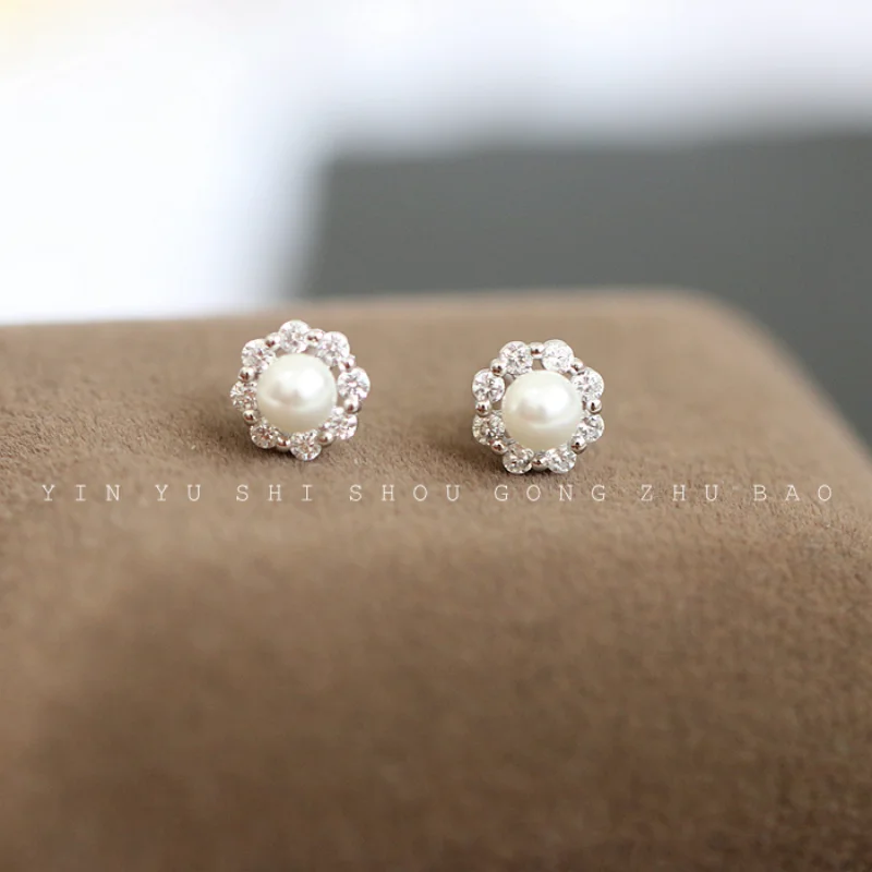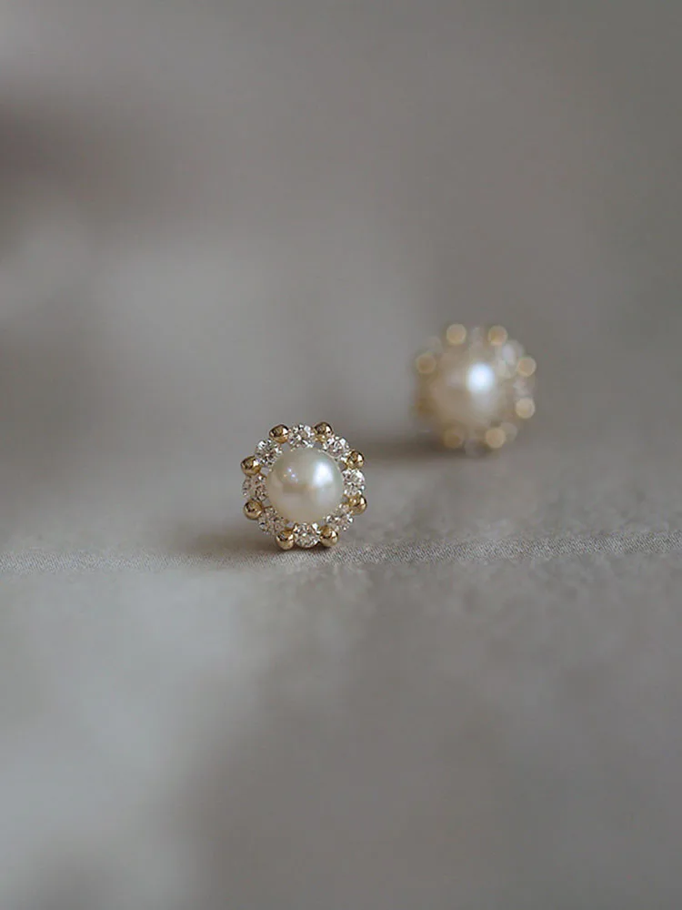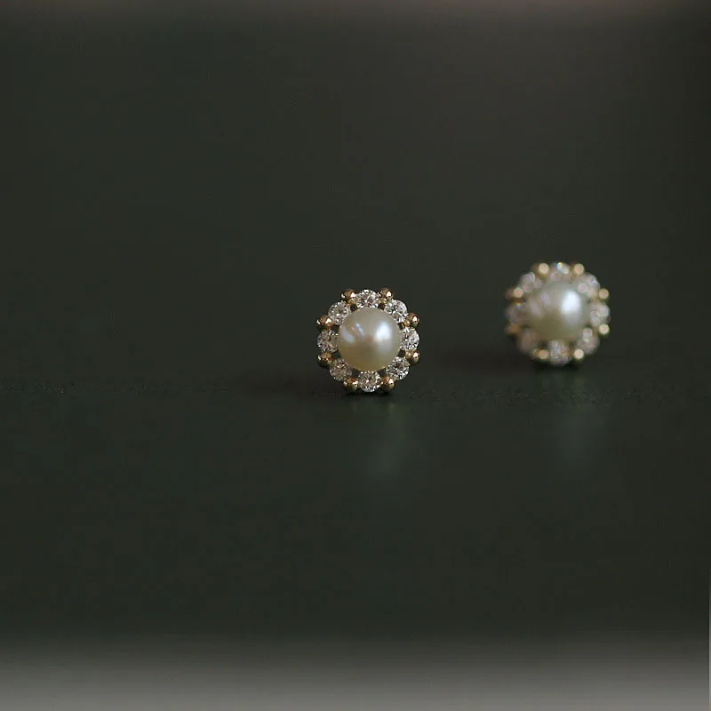 Vintage Disc Pearl Zirconia Stud Earrings Women, S925 Sterling Silver, Gentle Jewelry, Girly Gift, Daily Occasion, High Quality