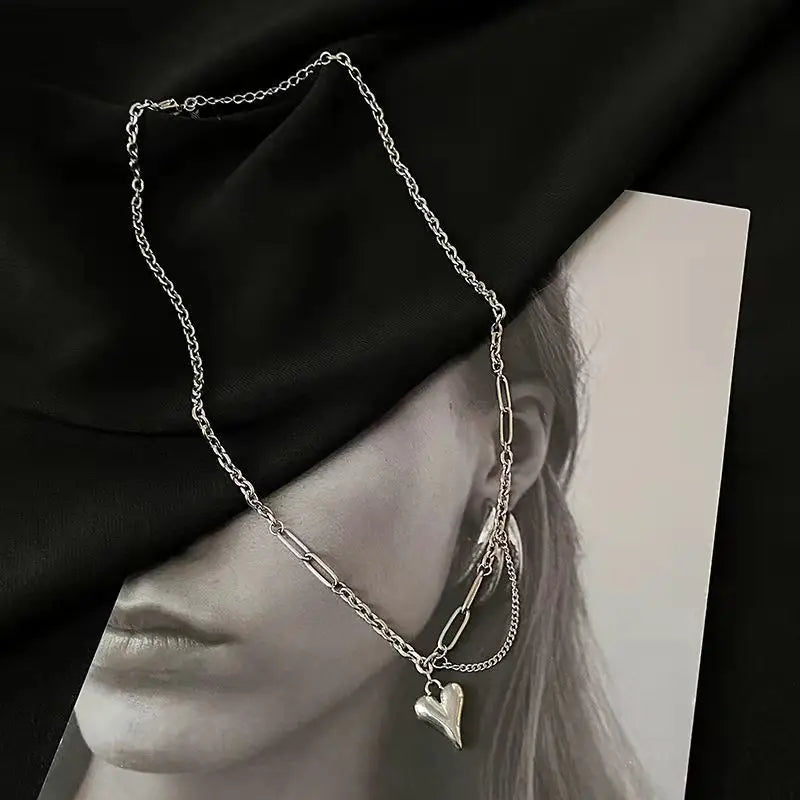 Yhpup Romantic Heart Pendant Necklace for Women High Quality Stainless Steel 18 K Metal Texture Choker Necklace Anniversary