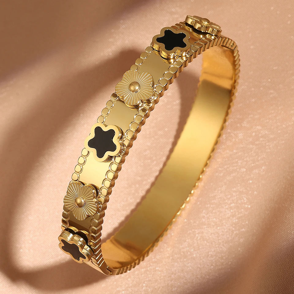 Yupsk Fashion Five-leaf Flower Stainless Steel Bracelet Bangle 18k Gold Color Lucky Grass Bracelets Female Jewelry Gift